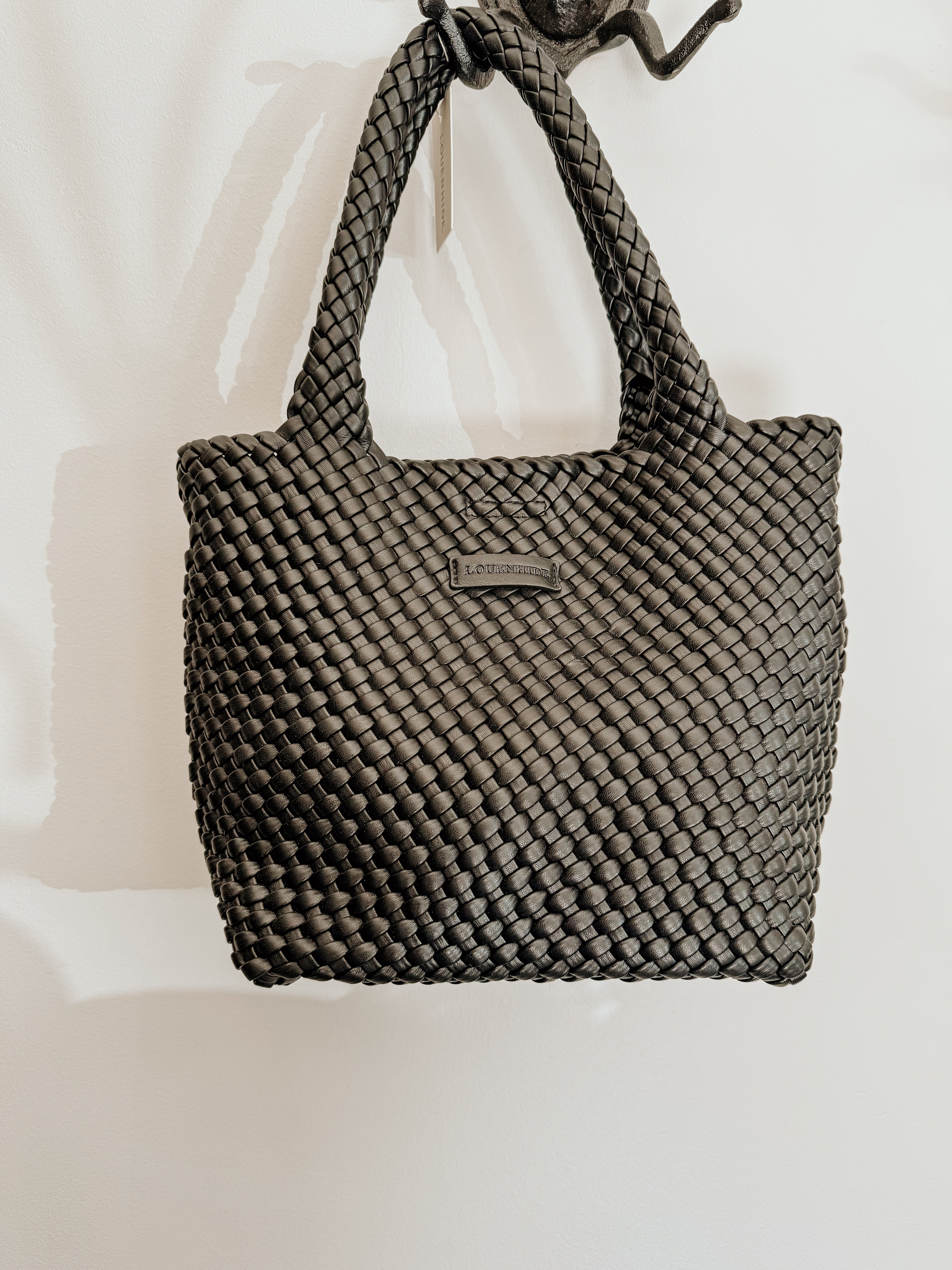 The Louenhide Cruiser Black Woven Tote Bag is the epitome of laid-back lux. Designed with a woven vegan leather exterior in a classic boxy tote bag style, this casual woven bag will add the perfect touch of texture to your everyday look. Simply carry by the comfortable top handles or attach the adjustable crossbody strap for a hands-free moment when strolling around town. Elevate your style and carry your essentials with the Cruiser Coffee Tote Bag.