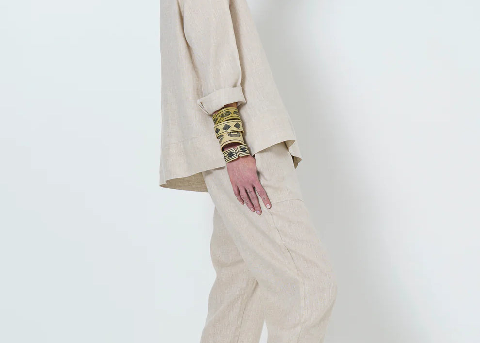 Bone Frame With Dotted Stripes | Ivory & Brown