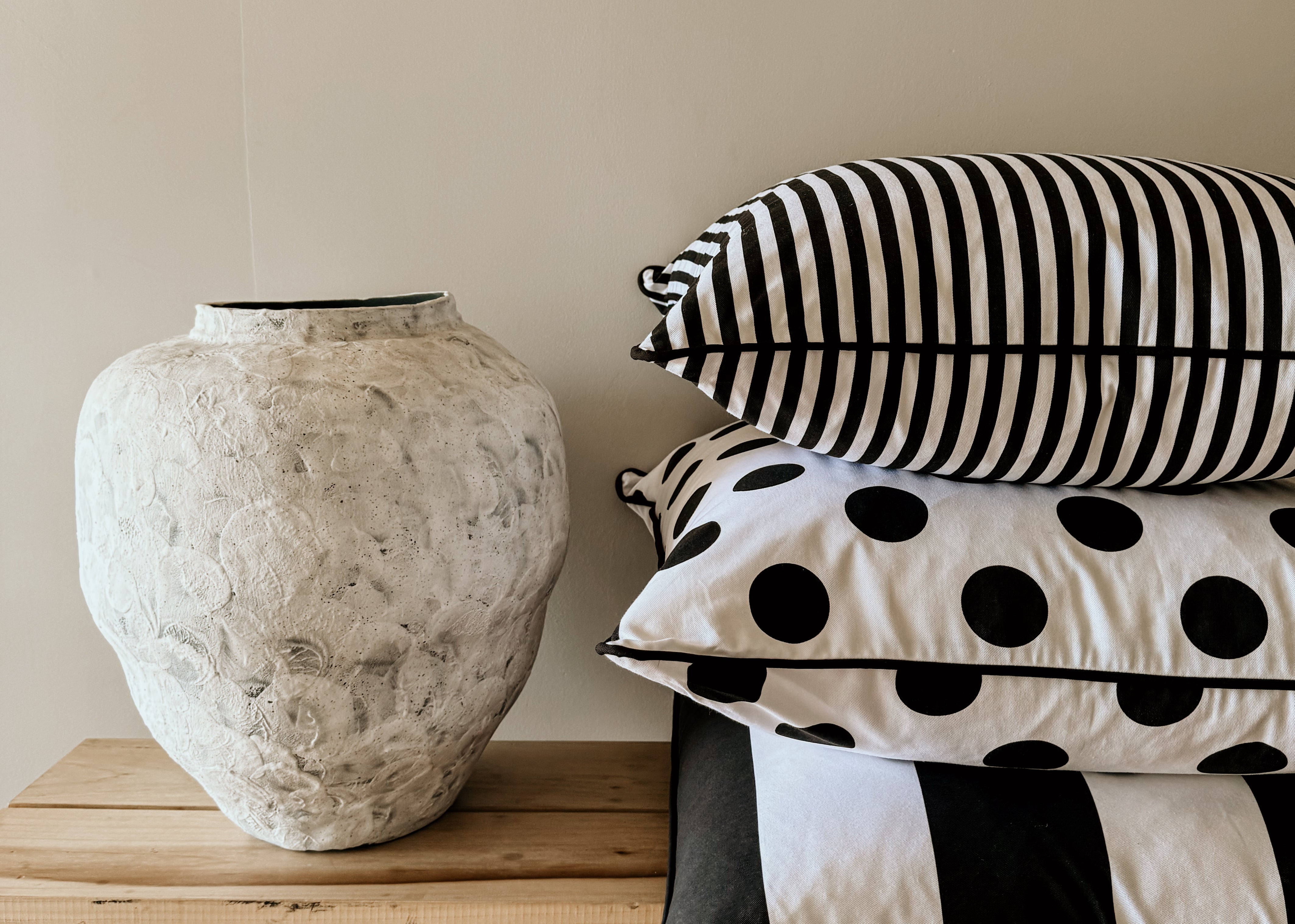 Adele Catherine's decor is mostly monochromatic, tactile and versatile. It all works beautifully together to help you create a cohesive story in your own home. Every now and again we can't resist adding a pop of colour...