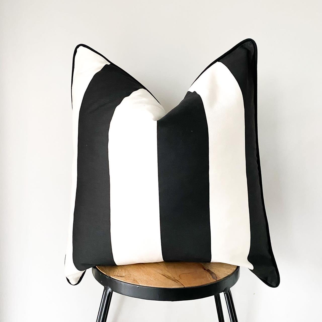 Crafted from 100% cotton, our Argo House French broad stripe scatter features bold black and white stripes, finished with a cheeky black piping detail that adds just that extra touch of sophistication.