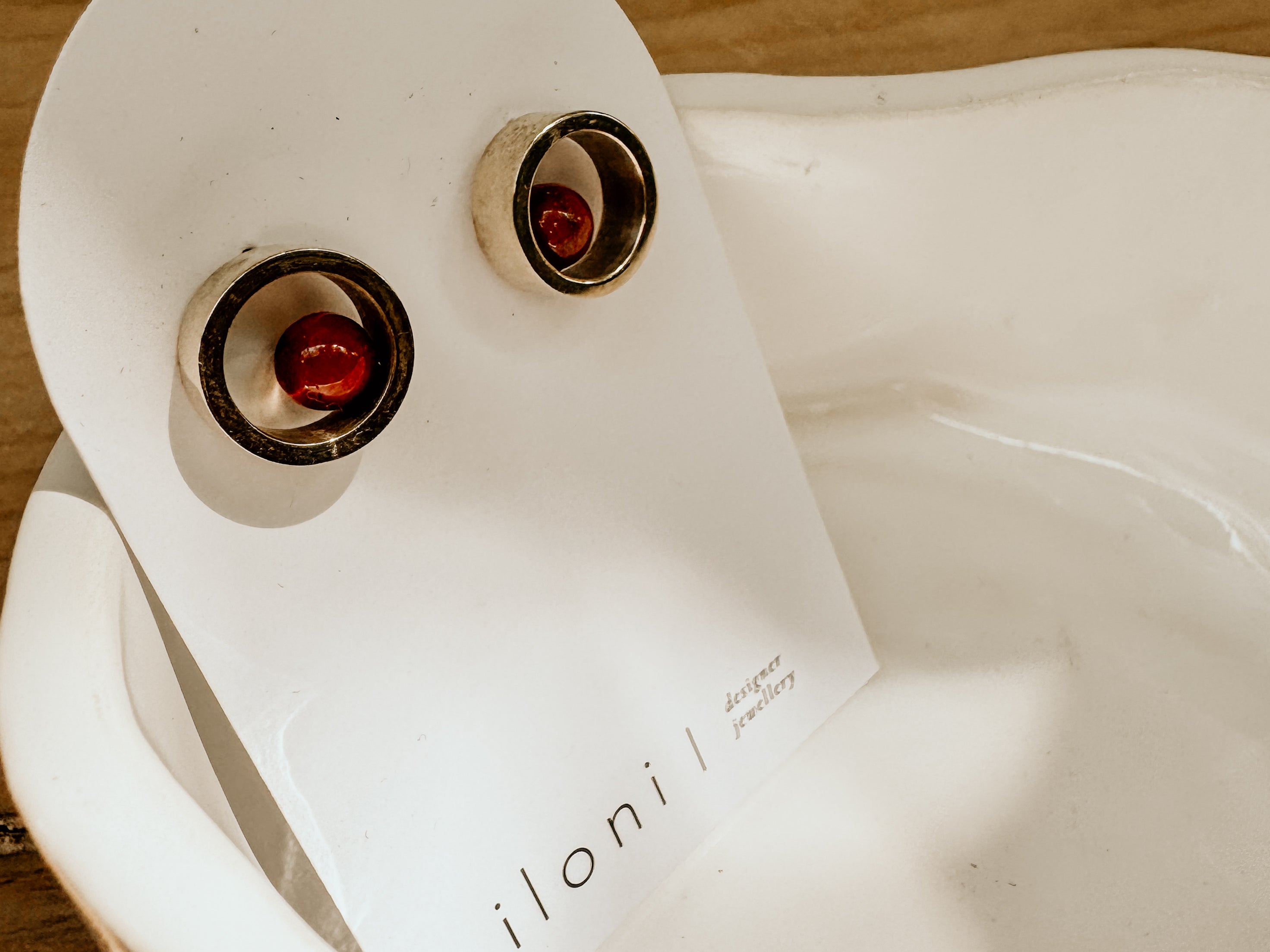 Available in brass with a red or white cultured pearl. Crafted to be versatile and effortlessly wearable, they are perfect for both daily wear and special occasions.