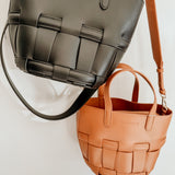 The Louenhide Bettina Bucket Bag in Tan is the epitome of seasonless style. The classic woven vegan leather detailing elevates your style by adding a touch of texture to the bucket bags’ silhouette.