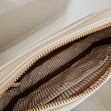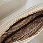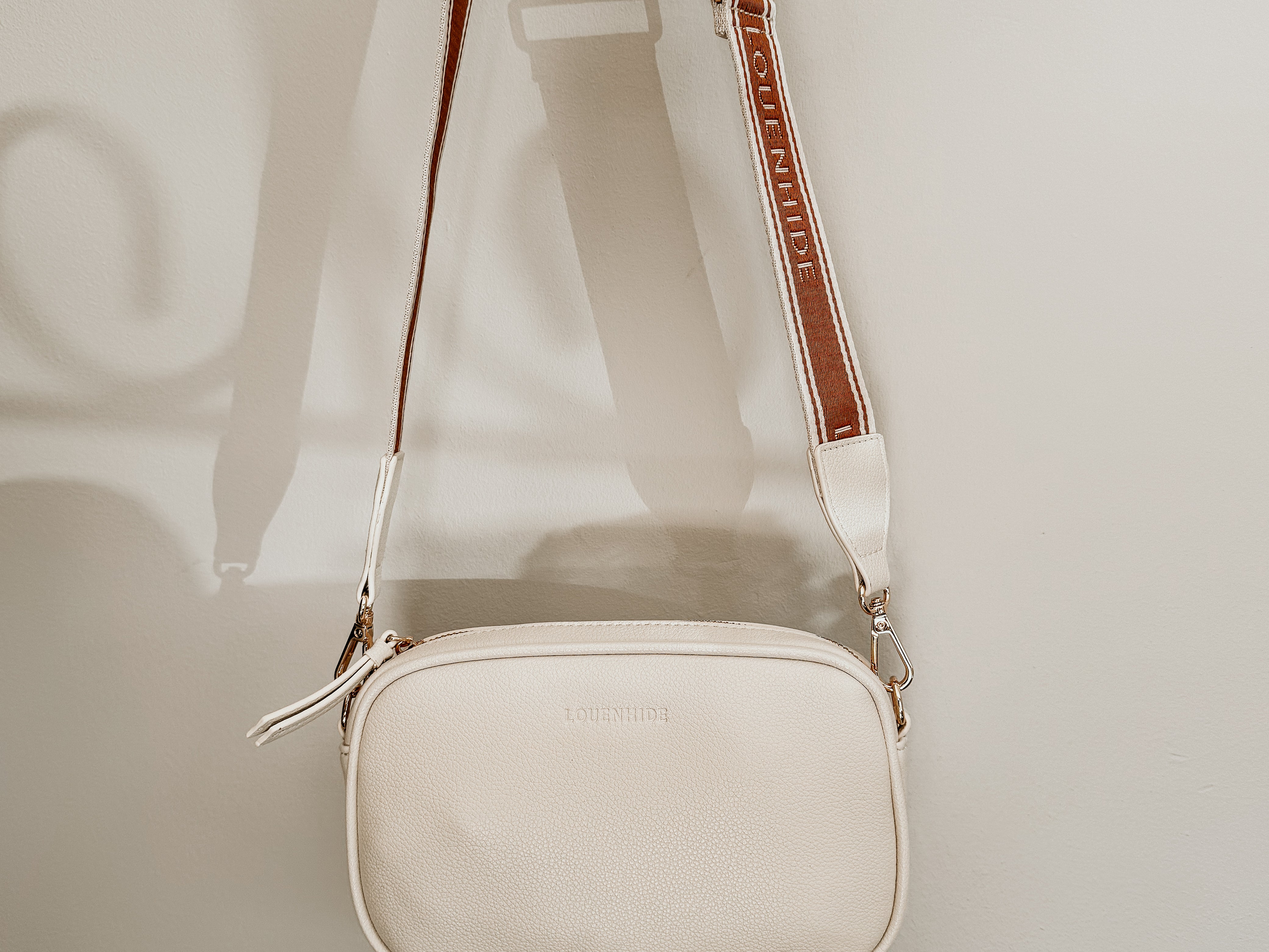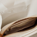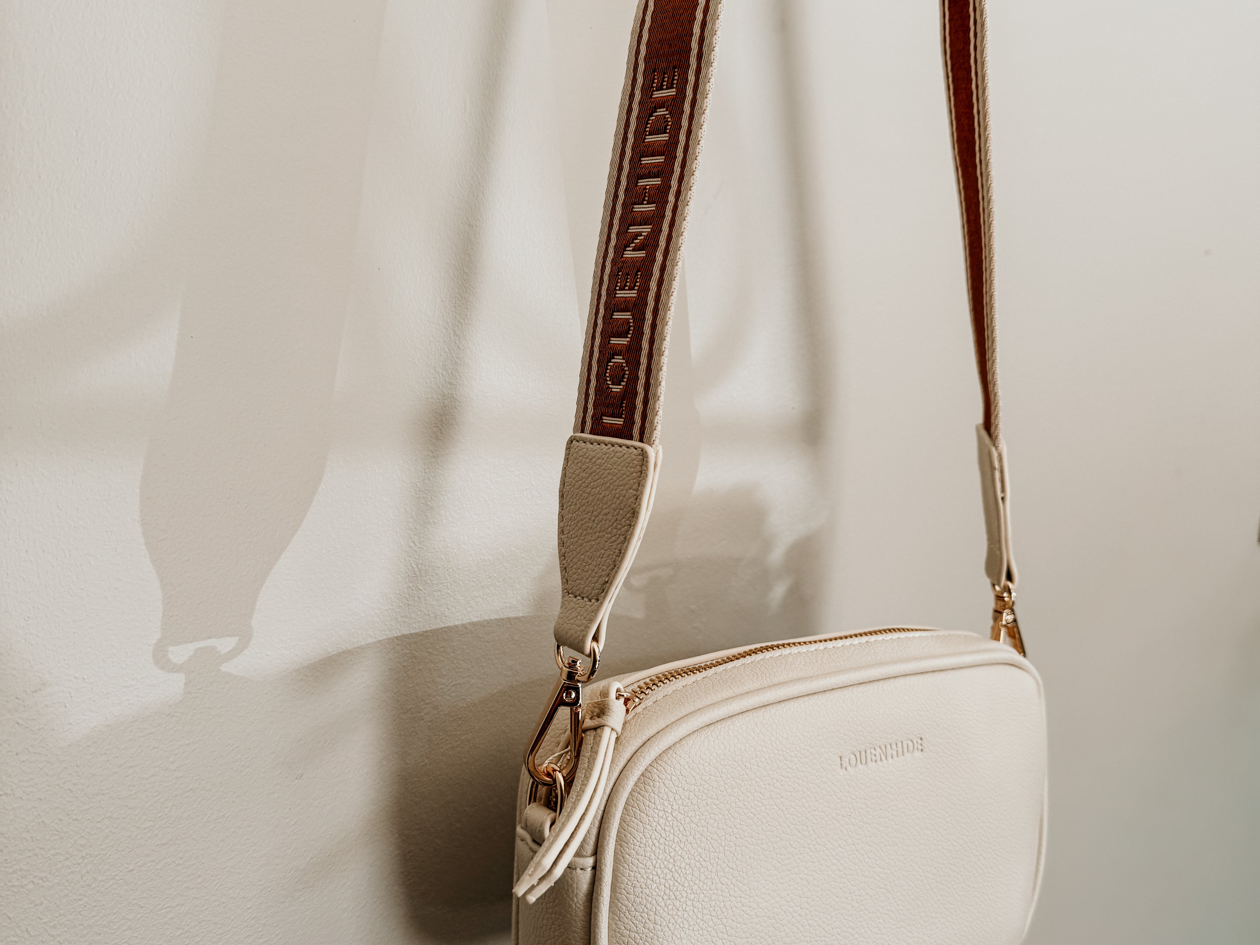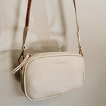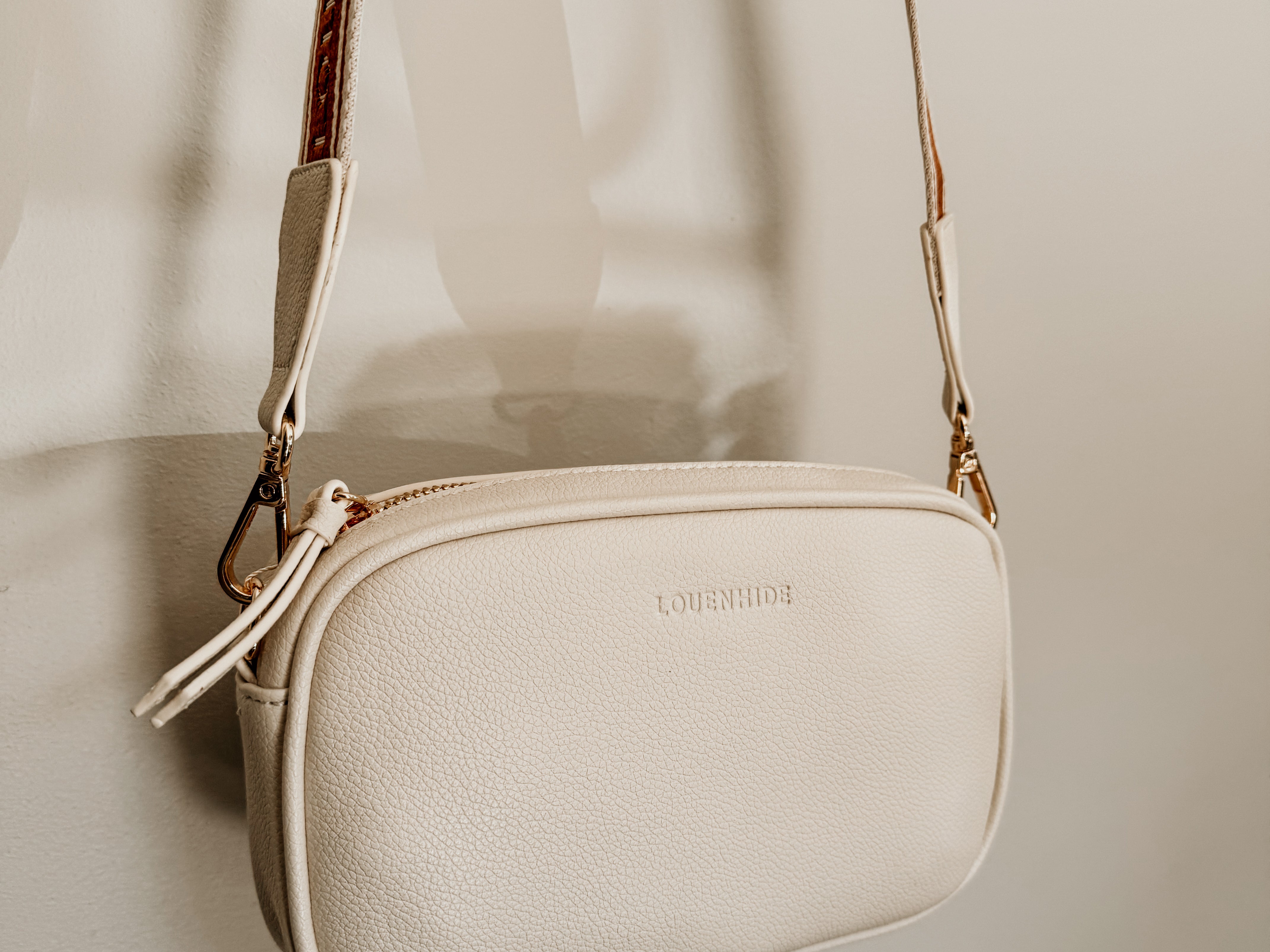 The Bianca Vanilla Crossbody Bag is a stylish yet practical companion, made from buttery soft vegan leather and finished with light gold hardware, she brings a polished touch to casual styling.