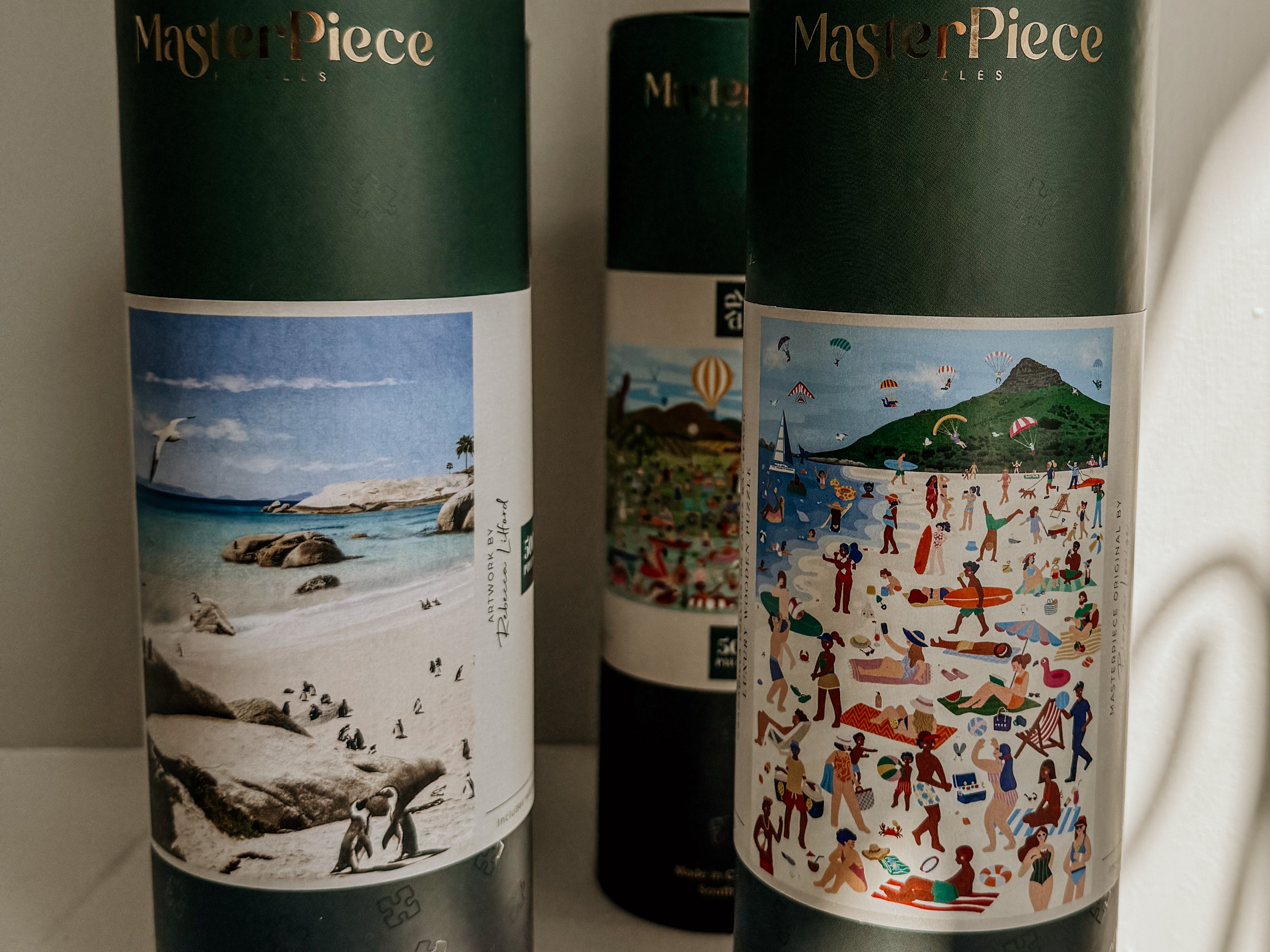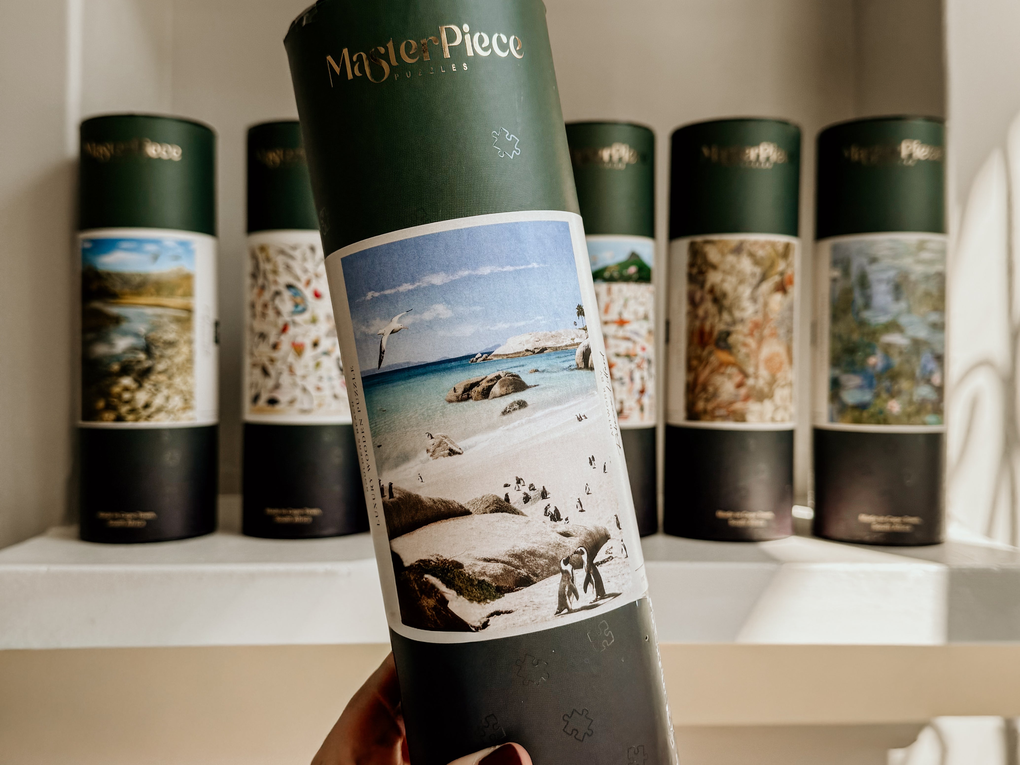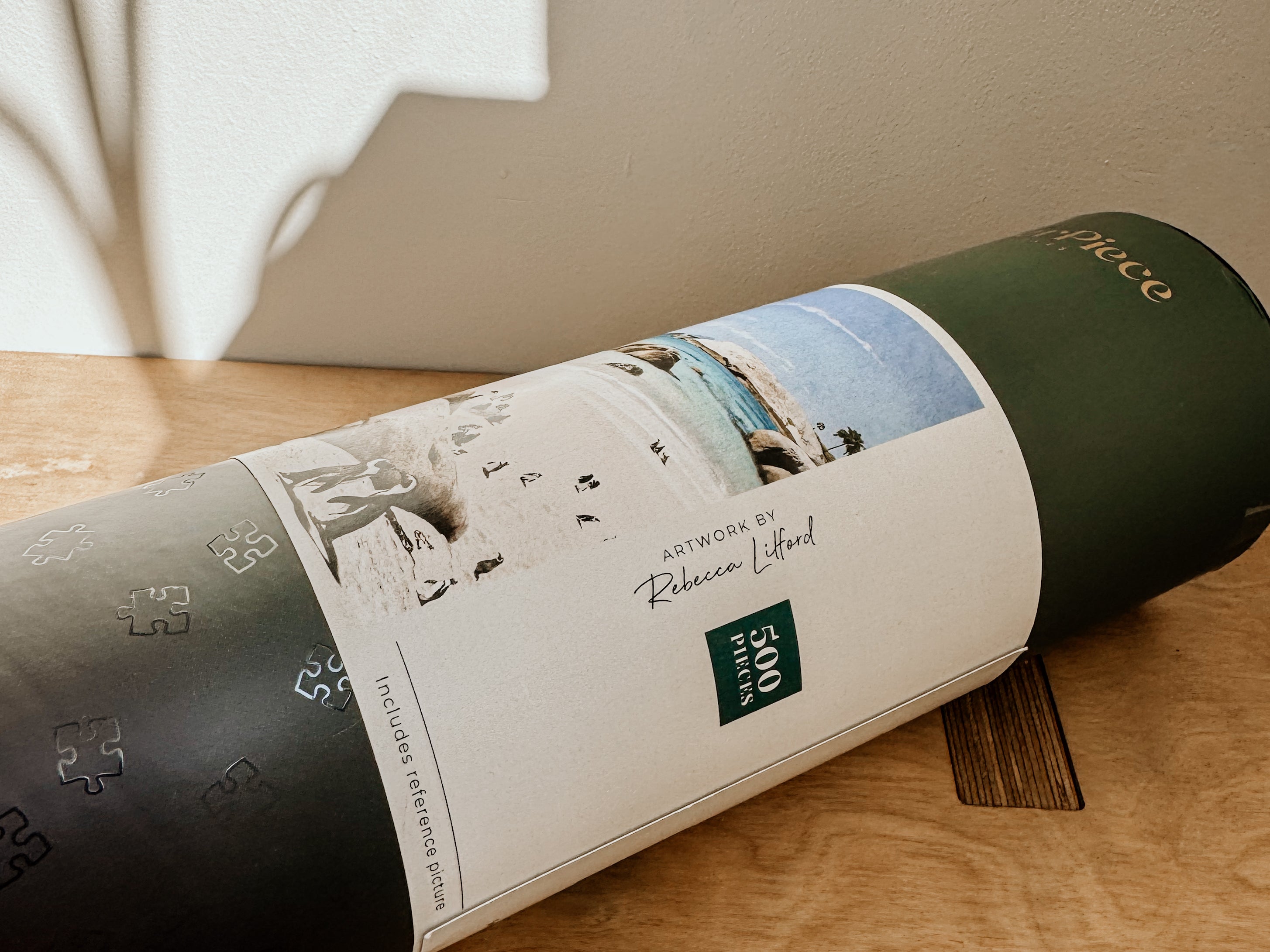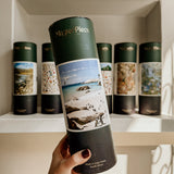 These puzzles are packaged in striking tubes that keep the pieces safe while looking beautiful on your shelf.