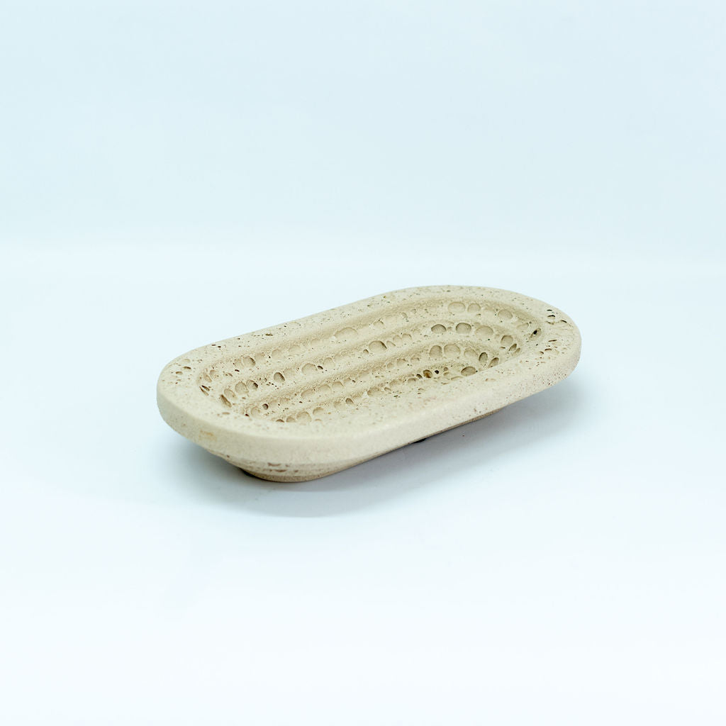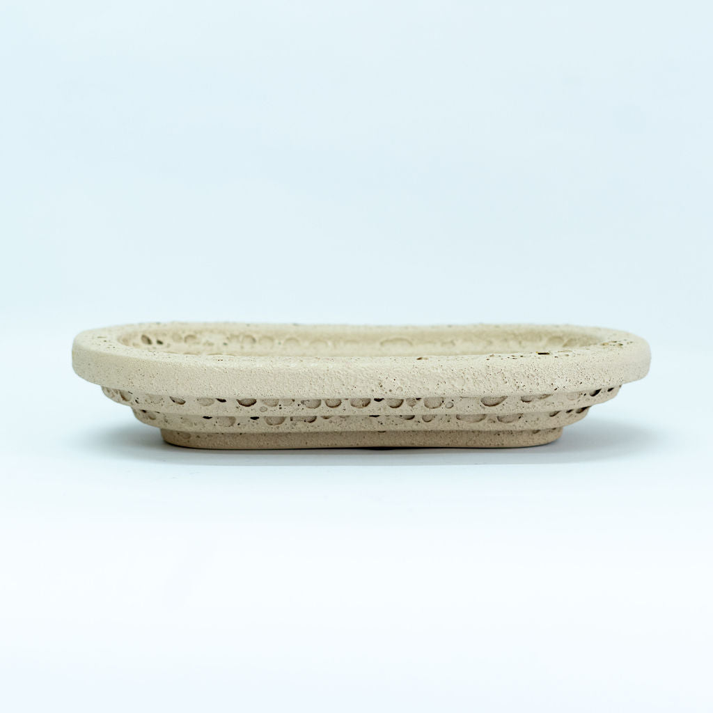 This bowl has side ridges and comes in a subtle cement color. It can be used as a trinket tray, adding modern sophistication to your space. Its compact size is ideal for holding small items or serving as a stylish accent on a dresser or side table.