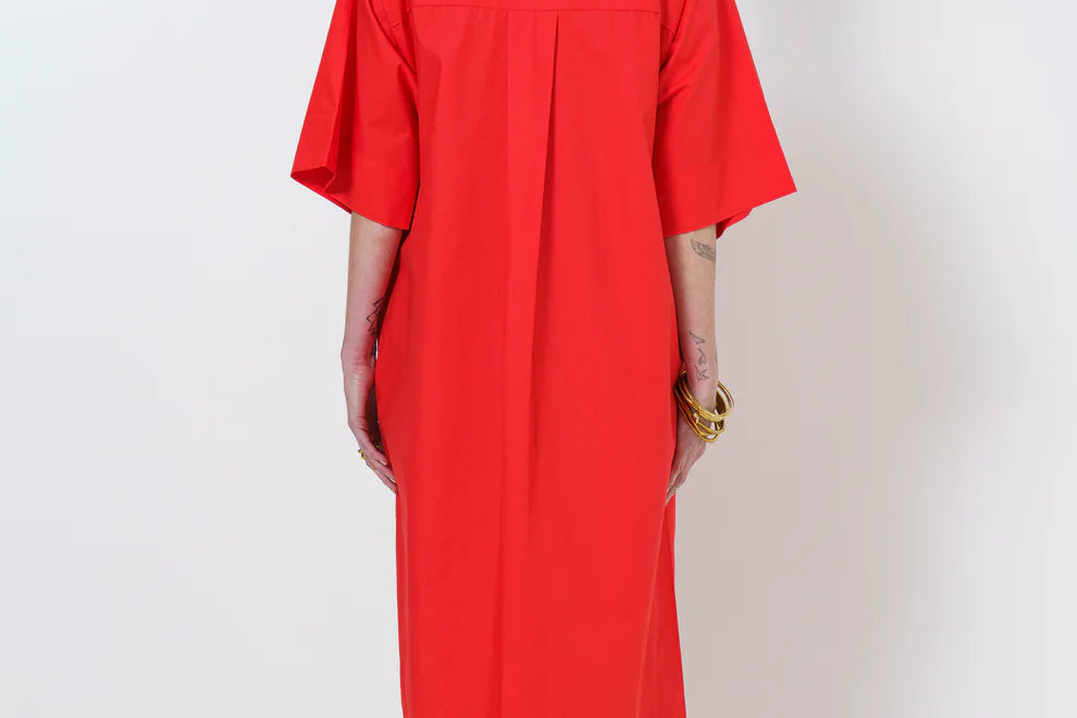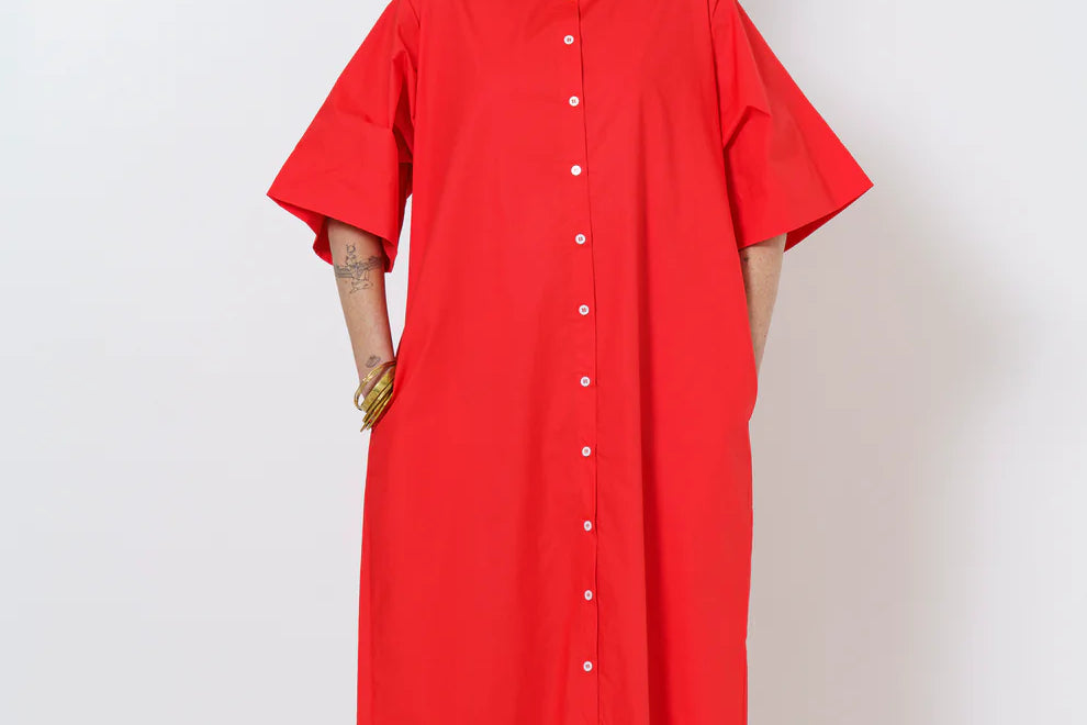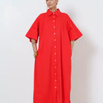 The Carine Button Up dress is a 100% cotton with pockets, and a box pleat for added comfort. This is a South African-made maxi length dress that can be buttoned up or down as you prefer to wear her.