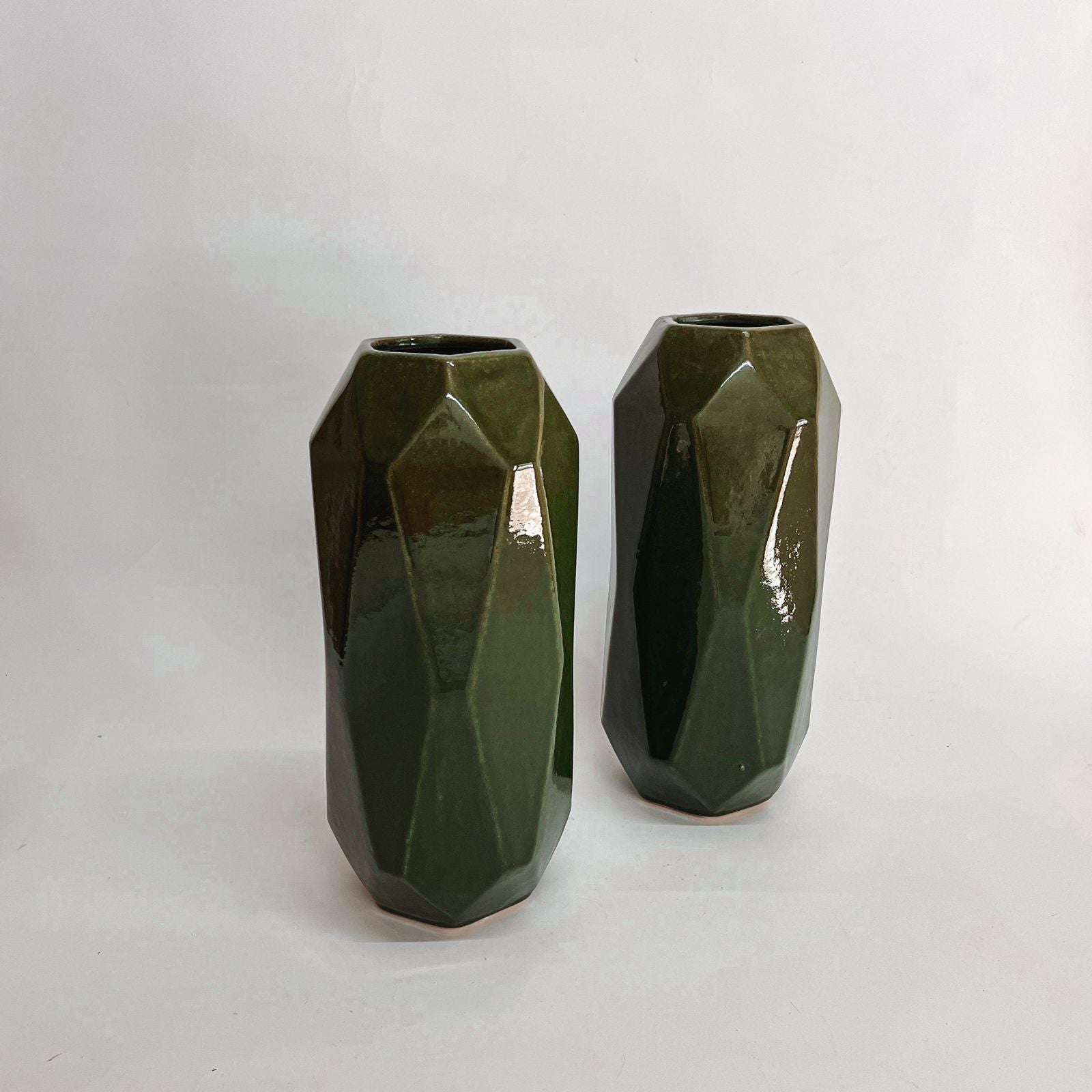 This vase stands out with its deep green colour and glossy finish. Its geometric design adds a modern, bold touch to any room. Whether used as a decorative piece or for showcasing flowers, this vase brings a natural, contemporary vibe to your home.