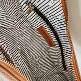 Accented by contrast feature stitching and light gold hardware, the Corfu Tan is the ideal companion for your vacation wardrobe and pairs beautifully with flowing linens and patterned silks.