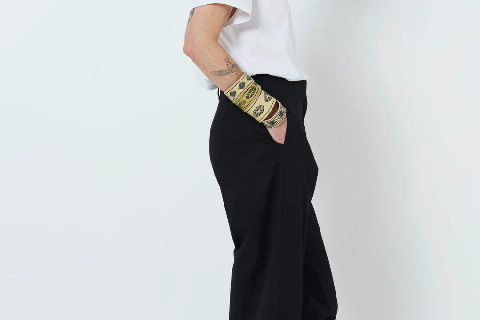 With a classic wide leg and a mid-rise waist, the locally made trousers offers a silhouette that works for every shape.