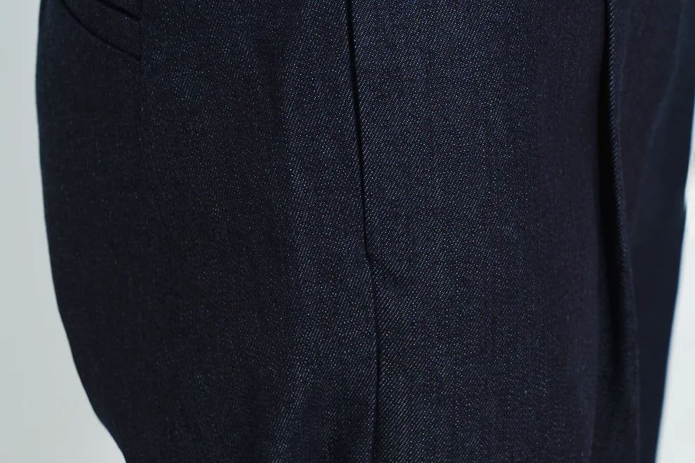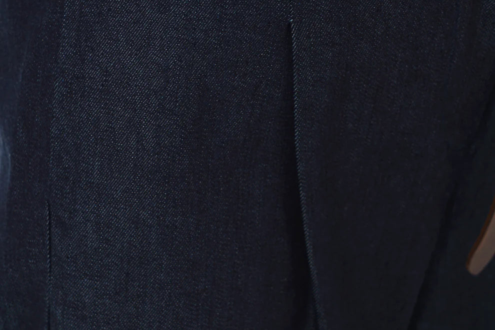 The cotton-spandex Indigo Denim offers both structure and stretch, making it as comfortable as it is elegant.