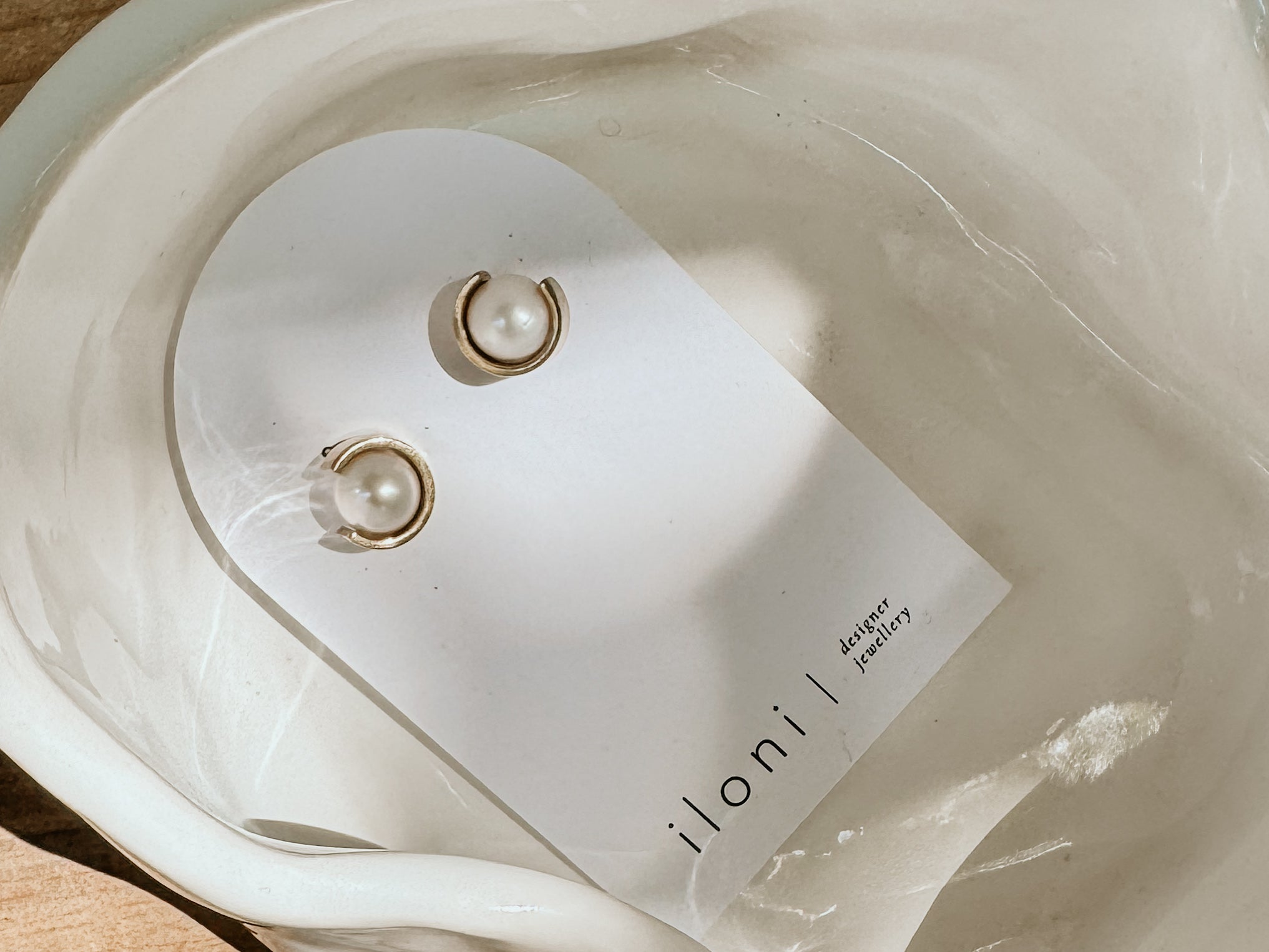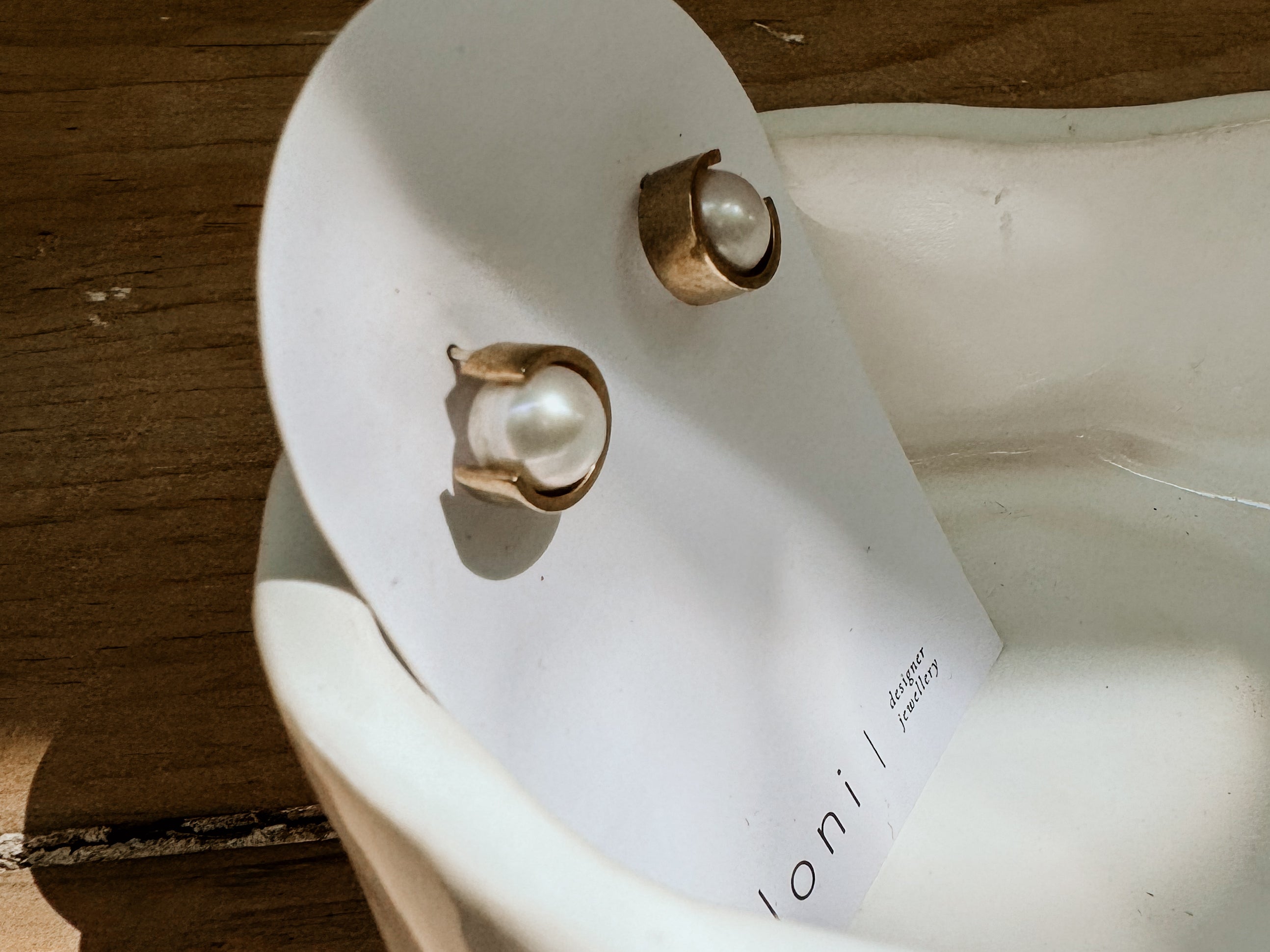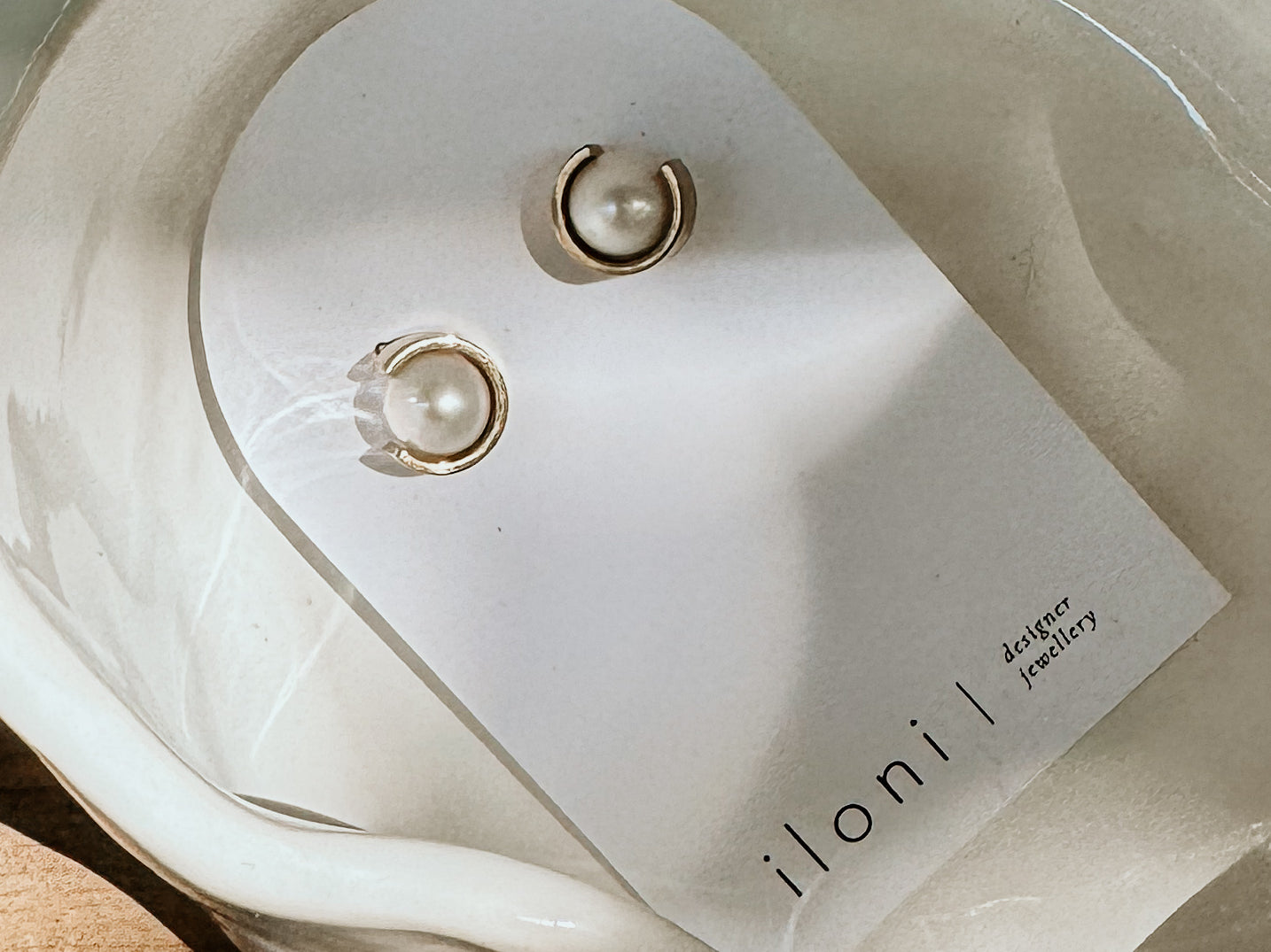 The Full Moon Earring features a distinctive three-quarter metal circle stud design, creating a unique visual appeal that's both contemporary and refined. Nestled perfectly within this elegant frame is a mesmerising white agate bead. The contrast between the rich black agate and the polished metal is nothing short of captivating, making these earrings a conversation starter.