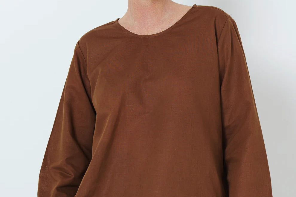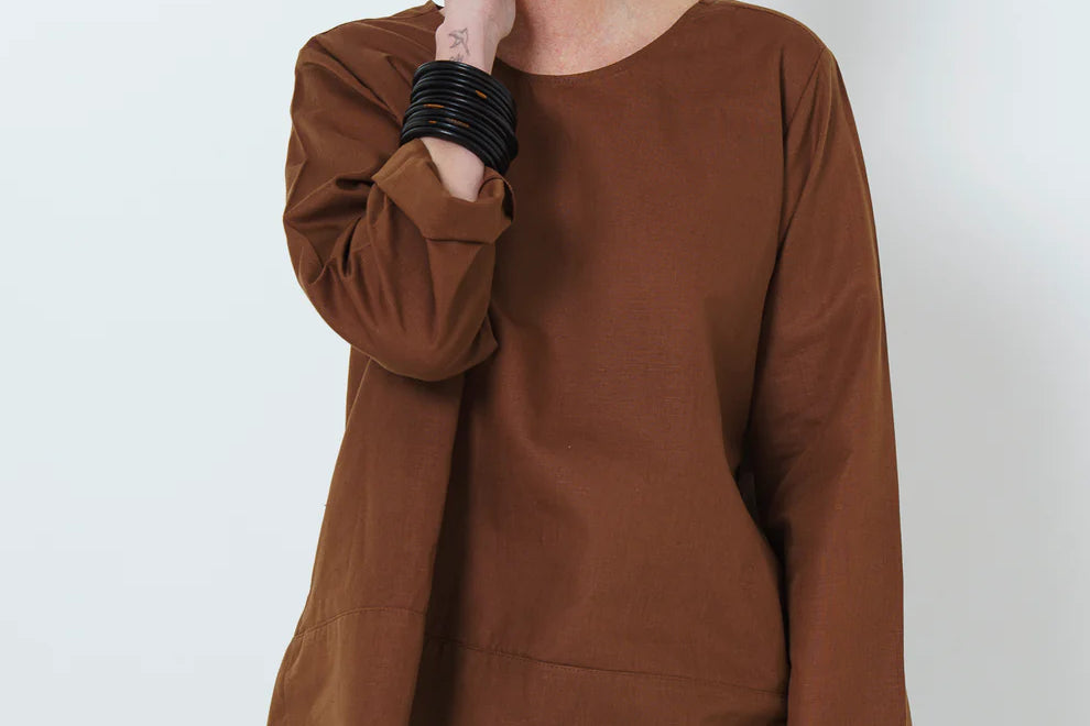 The HK tee is a voluminous South African-woven top with long sleeves. Great protection from the sun, whilst providing a trans-seasonal wardrobe addition.