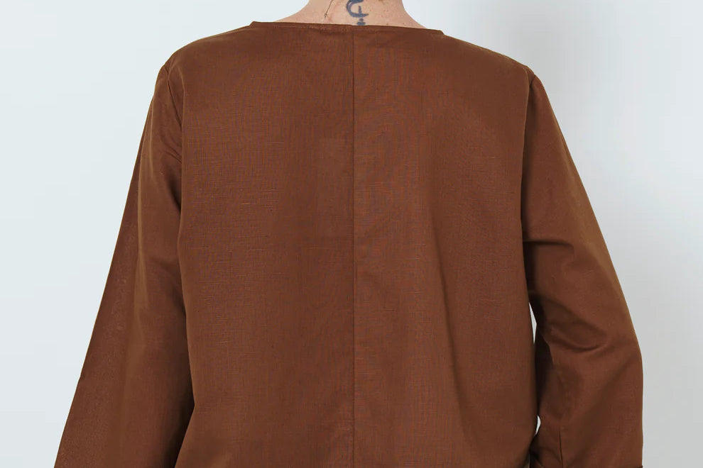Made of a cotton linen blend the HK top is breathable and sustainable.