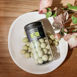 Imagine freshly picked green strawberries together with exquisite red liquorice in a sweet, fruity bite. Enjoy how fresh and sour notes from crispy, green strawberries are perfectly balanced with chewy red liquorice, all swirled in silky white chocolate and a crunchy, green sugar shell for an extra sour twist.