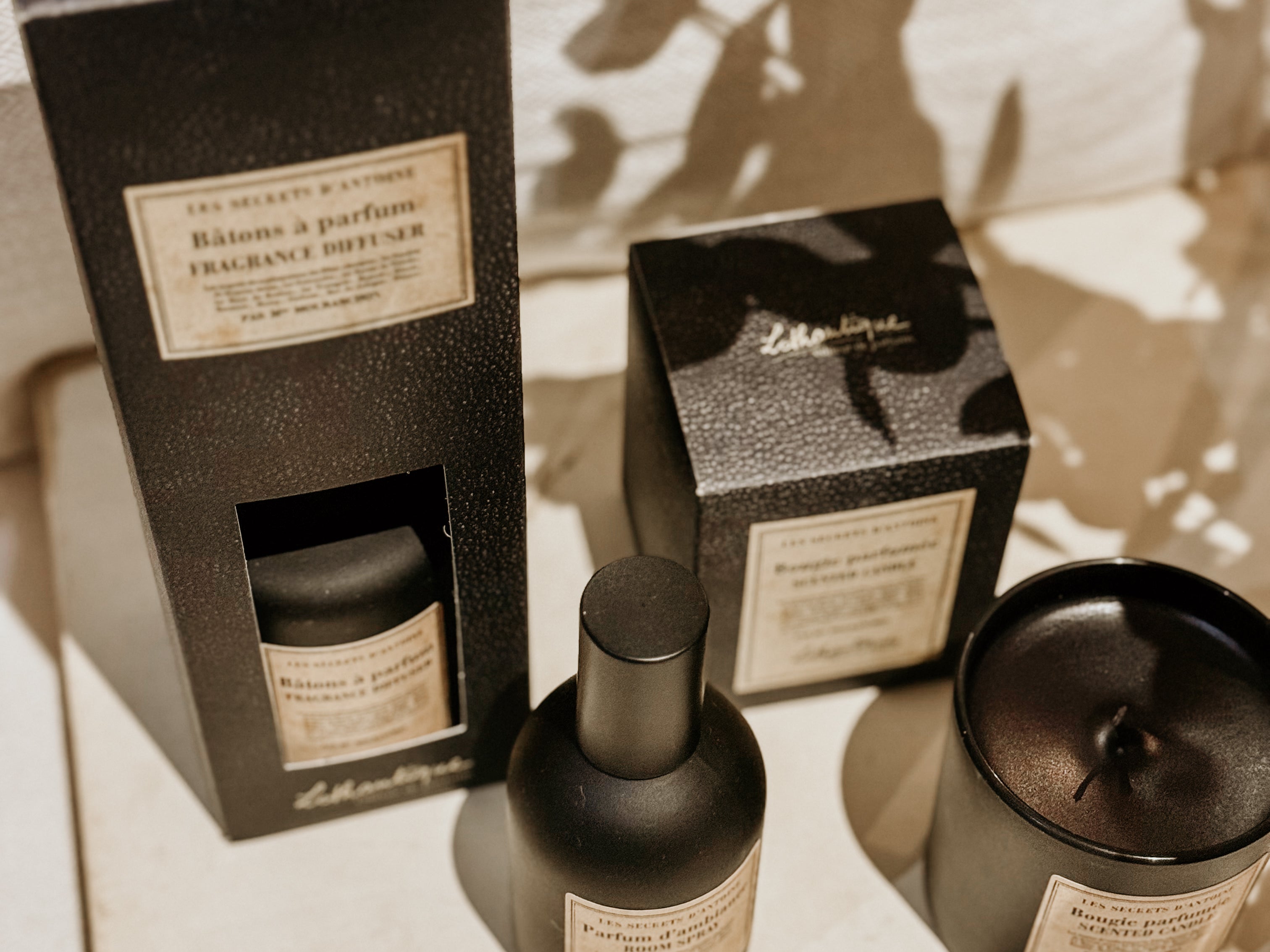 Les Secrets D'Antoine is woody and subtly spiced with citrus zest packaged in black.