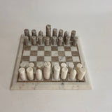 "Elevate your game with this marble chess board. Crafted from smooth white and grey marble, it offers a sleek and stylish playing surface. Whether you're a seasoned player or just starting out, this board adds a touch of class to every match."