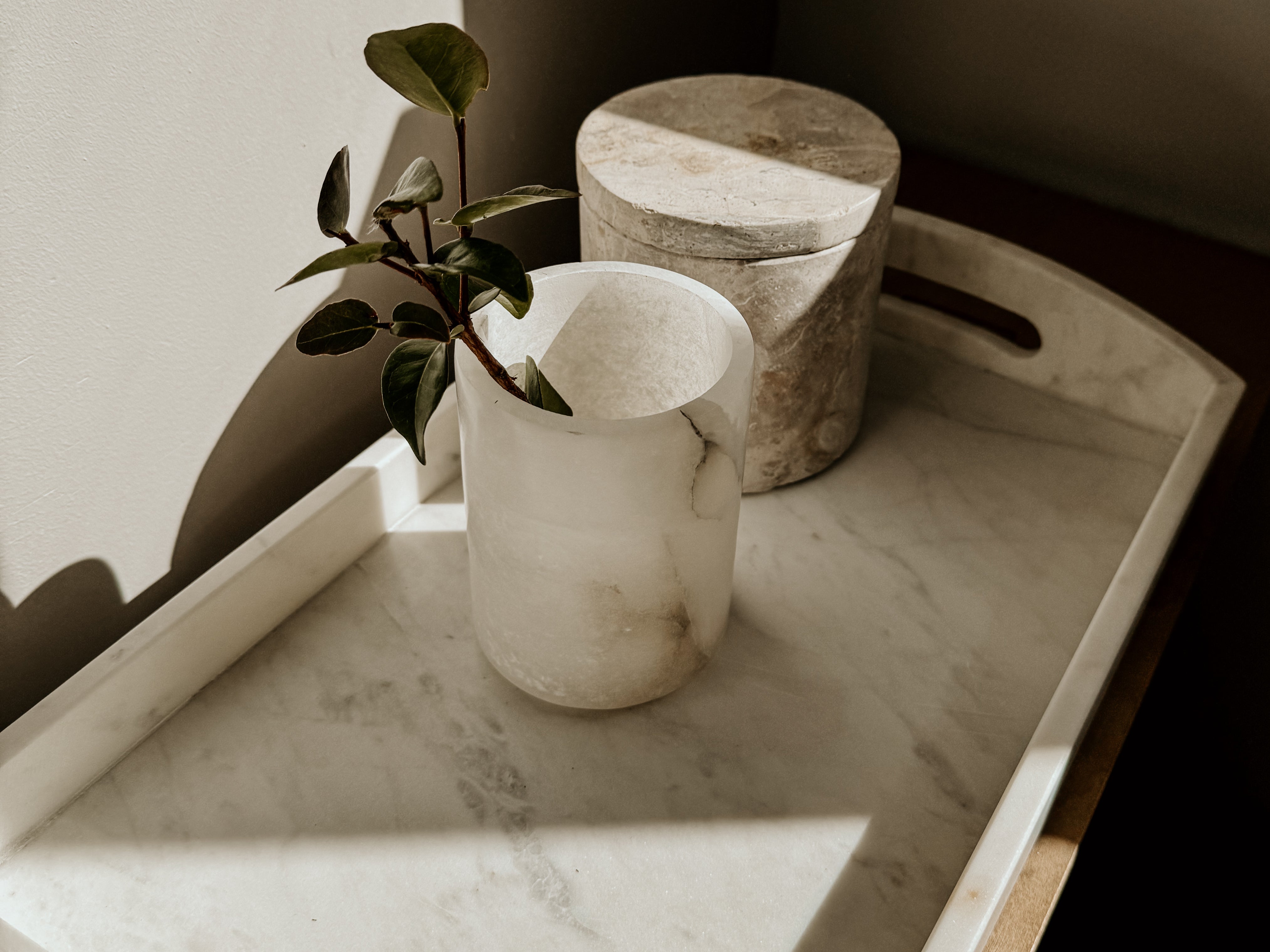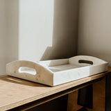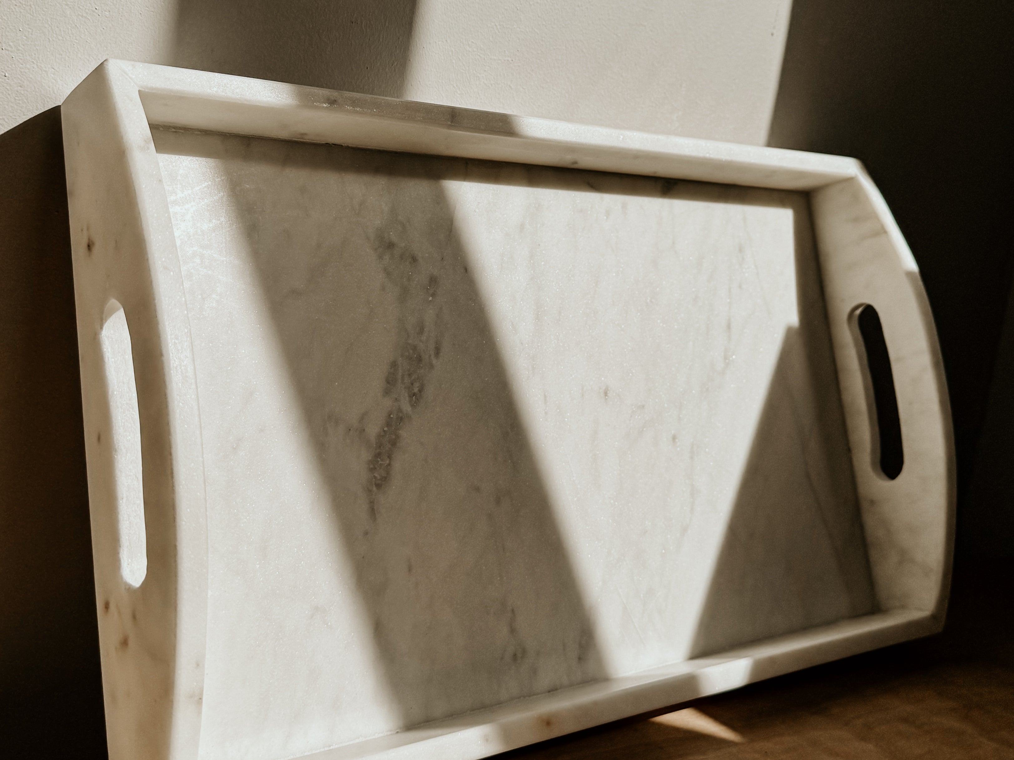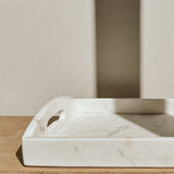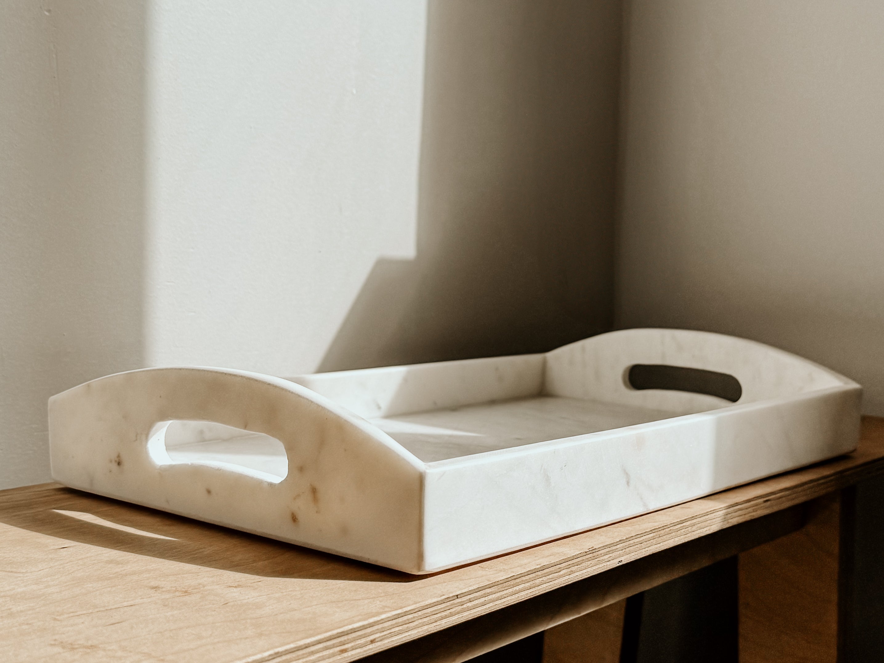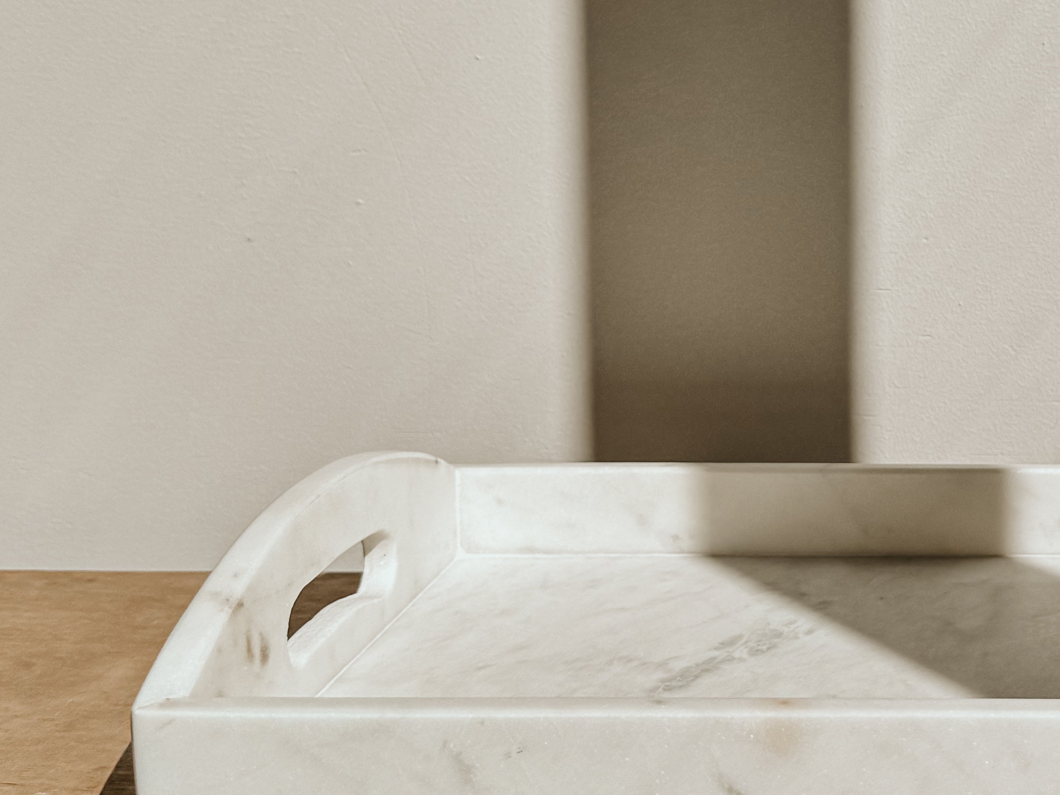 This rectangular white marble tray, combines timeless taste and practical design. Its smooth surface and clean lines make it perfect for organising essentials or showcasing decorative items with refined simplicity. Crafted from premium marble, this tray adds a sophisticated touch to any room.