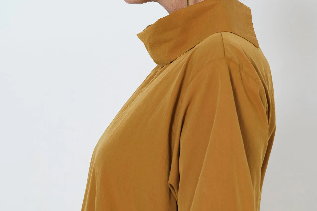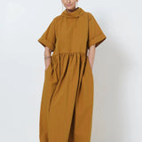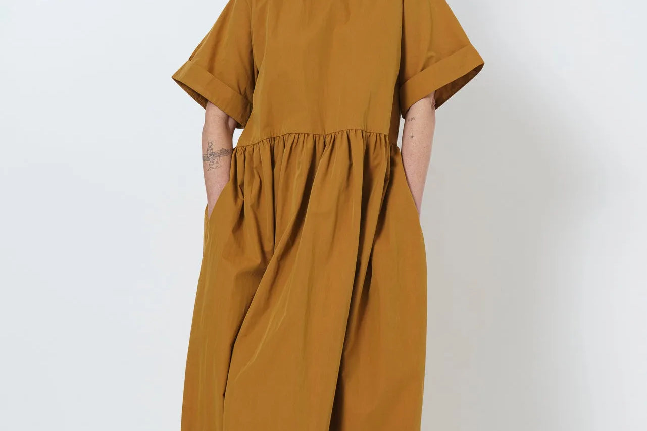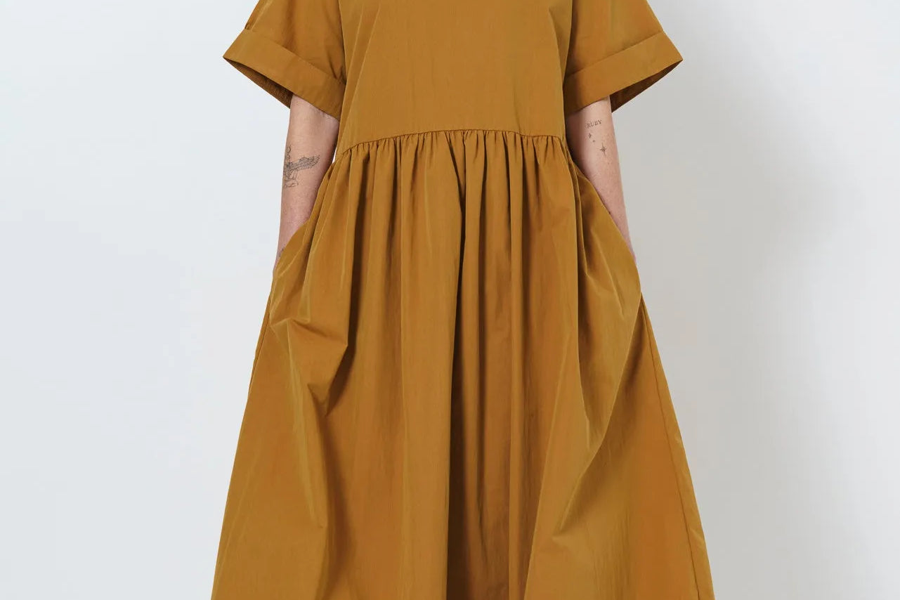 The Maud dress has a sculpted collar with an easy dropped waist, balancing structure with softness. Kloth & Kin is known for pockets, but this time have added turn up sleeves for a strong but minimal aesthetic.