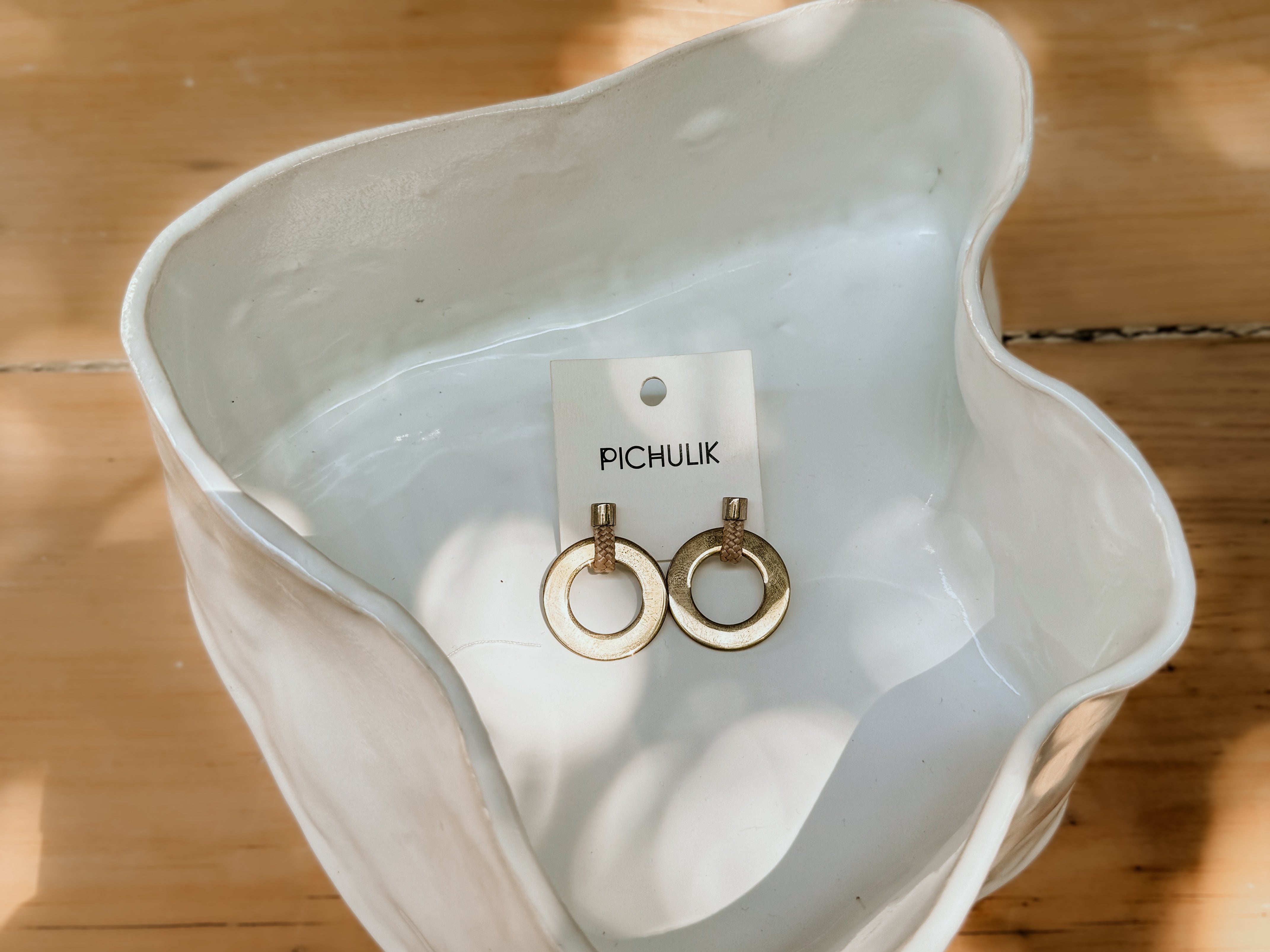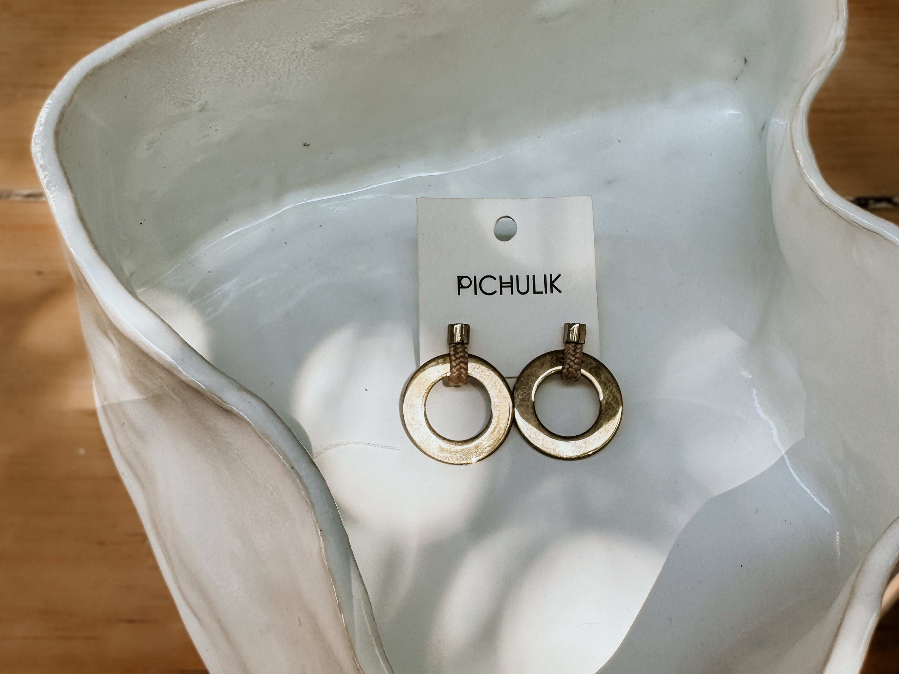 Brass studs with titanium pins and brass discs connected with braided rope.