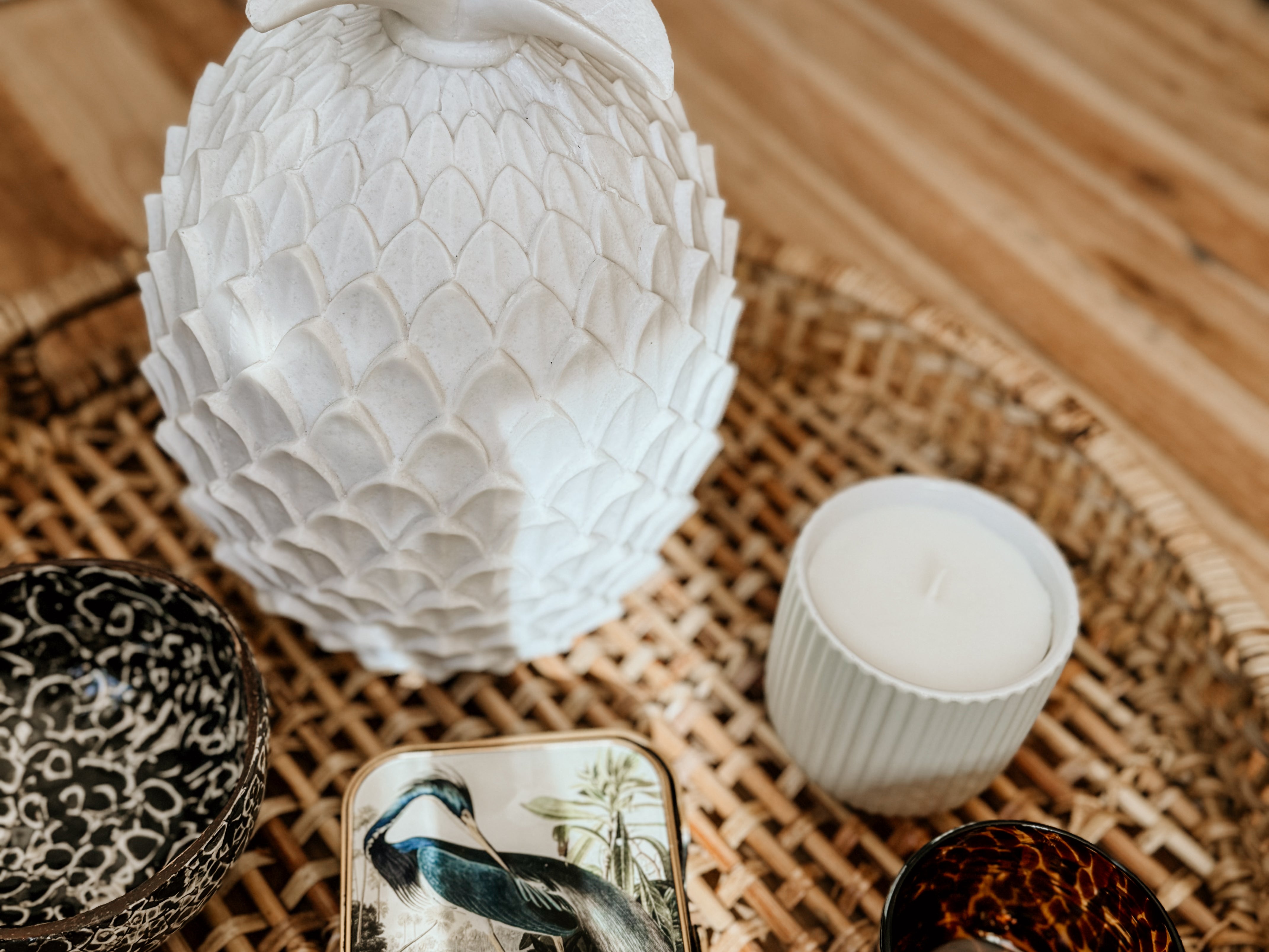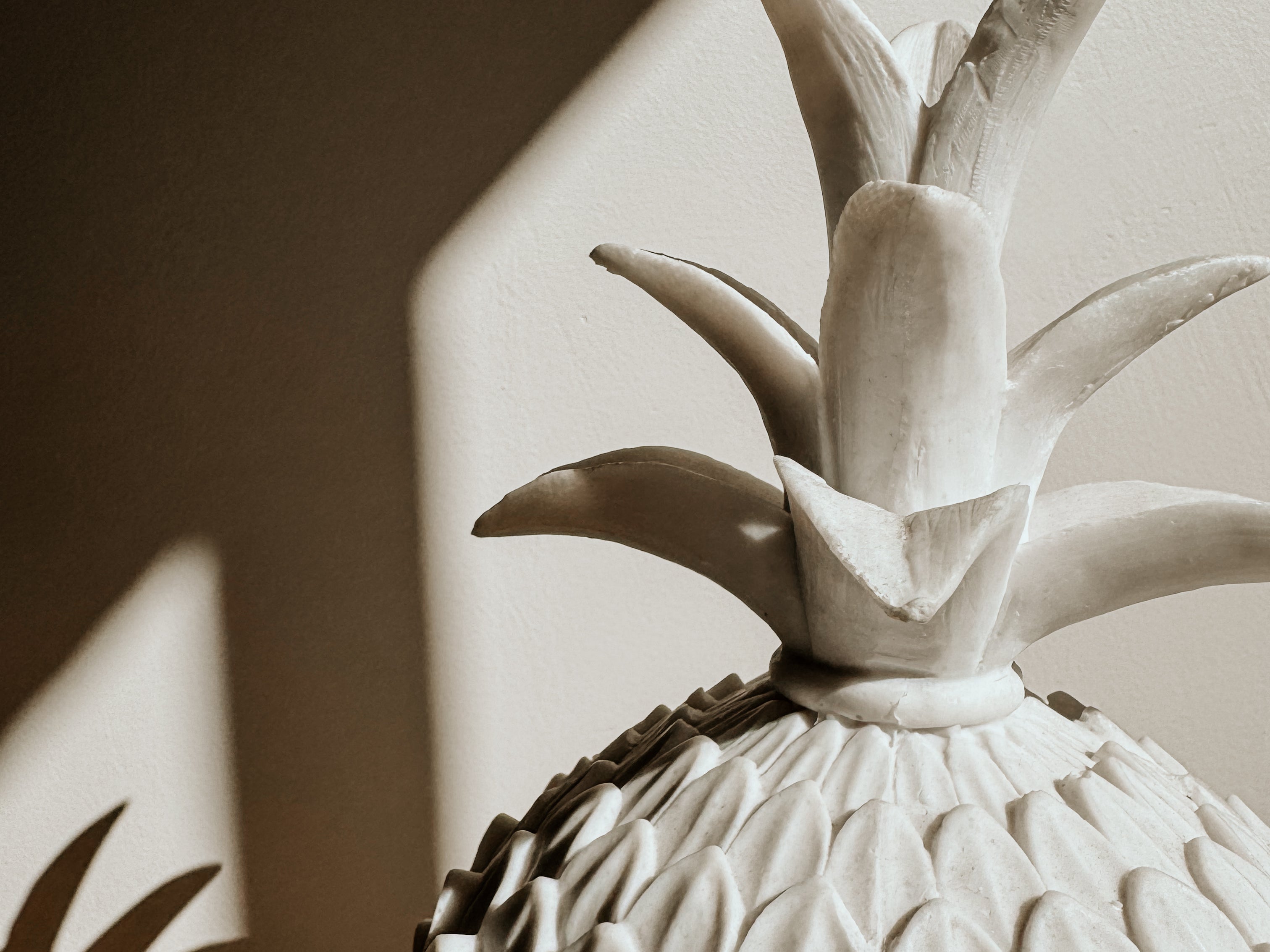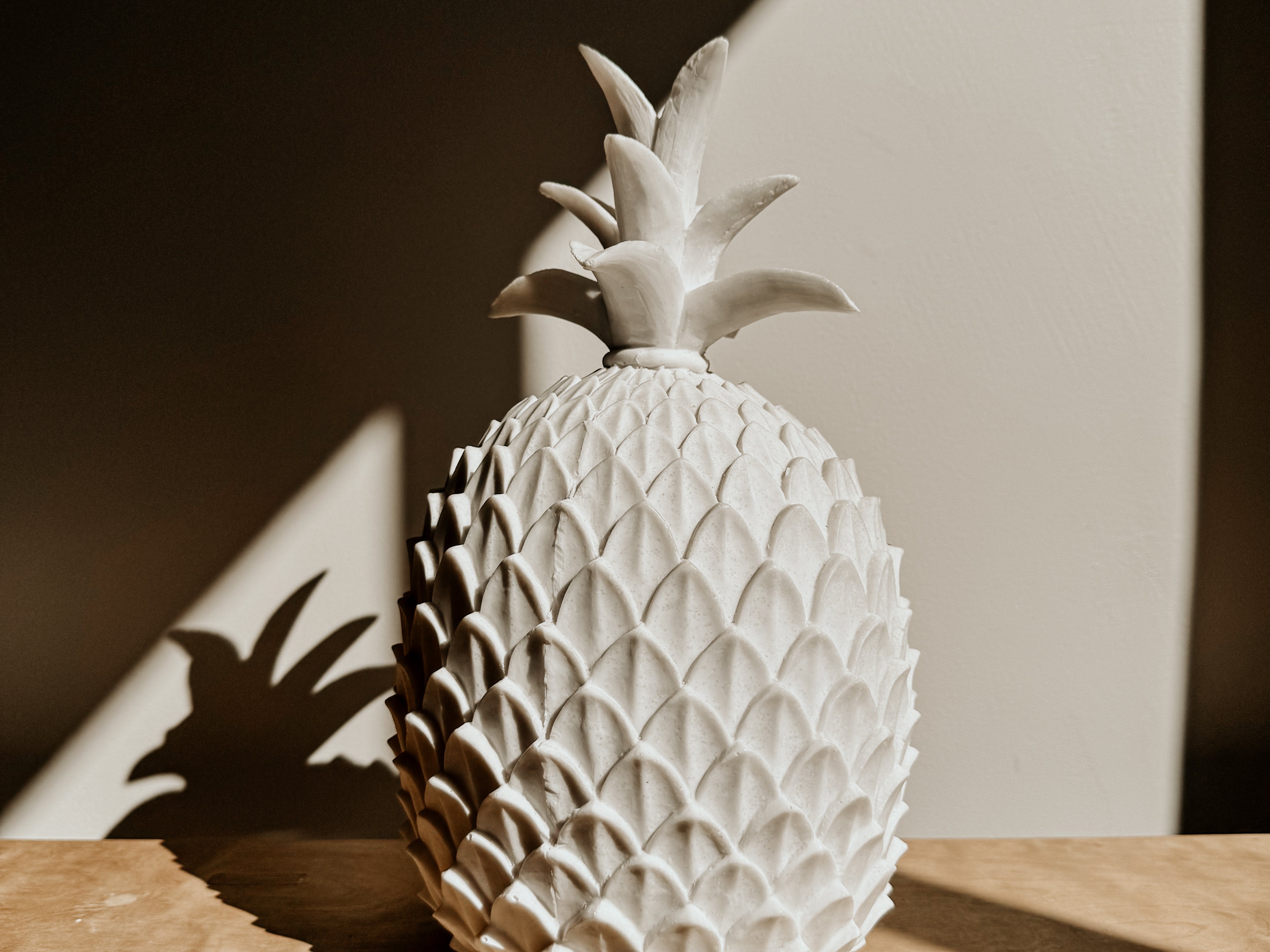 Elevate your décor with this elegant white ceramic pineapple. Its refined design adds a subtle tropical charm, making it a sophisticated accent piece for any space. Perfect for those who appreciate understated style with a unique touch.