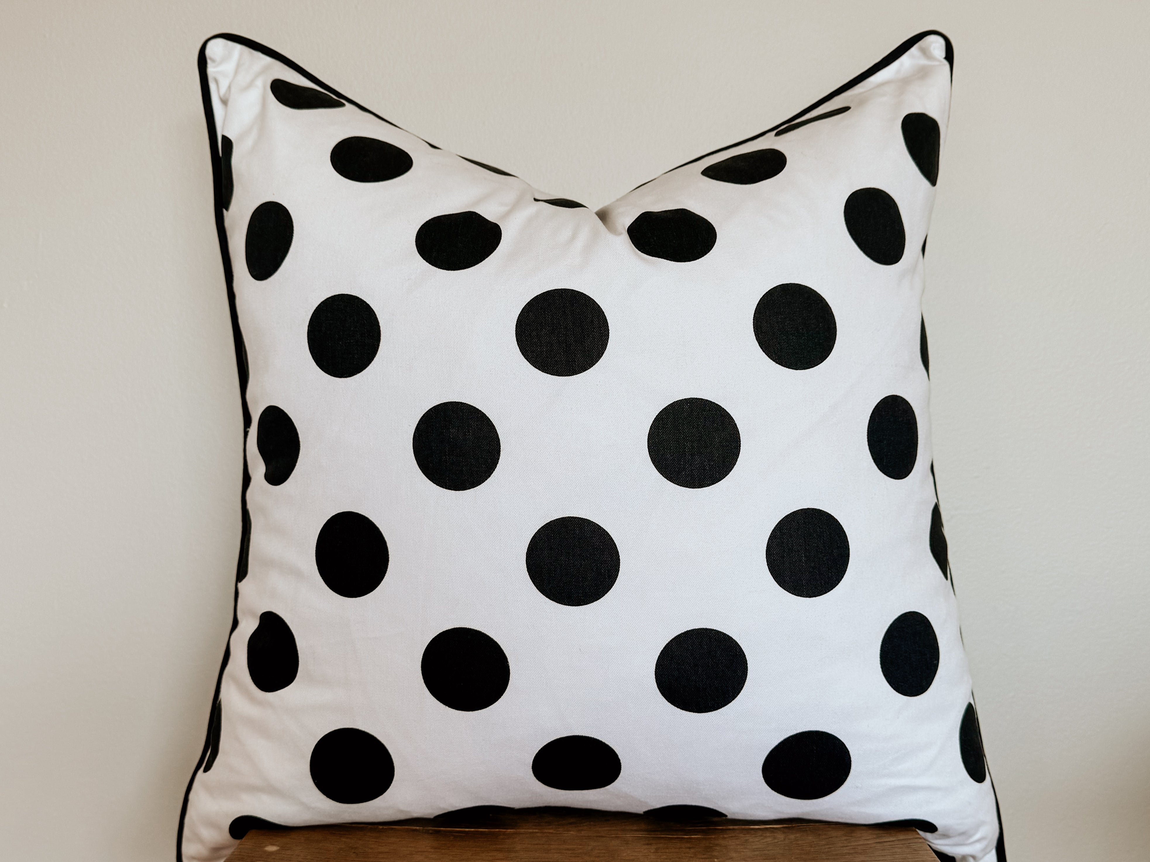 Transform any room with this trendy Polka Dots Black & White Scatter! Made from pure 100% cotton, it showcases striking black dots dancing across a crisp white canvas.