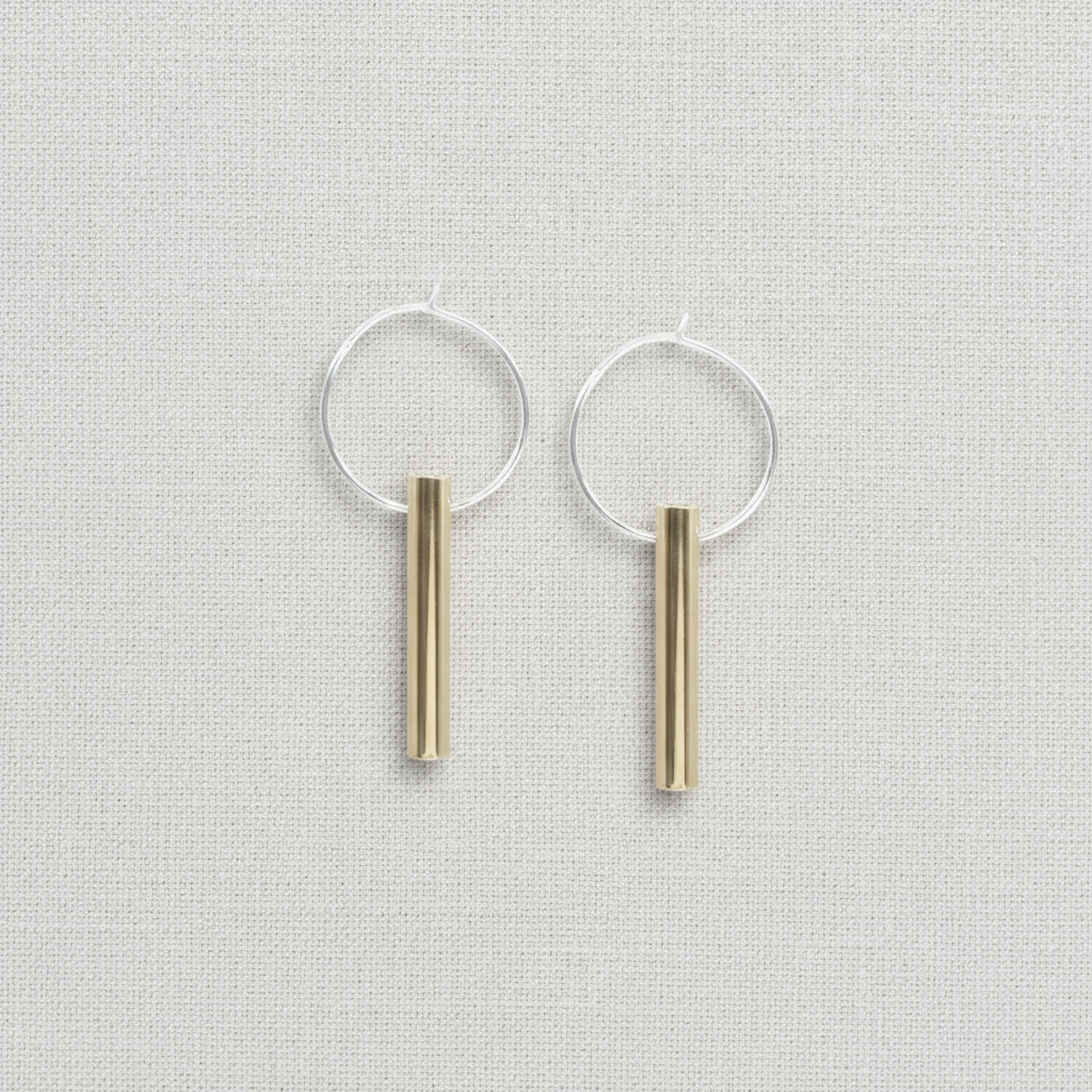 Elevate your everyday style with these small hoop earrings, blending timeless elegance with modern sophistication. Featuring polished brass bars on sterling silver hoops these earrings are a chic and versatile accessory that complements any outfit.