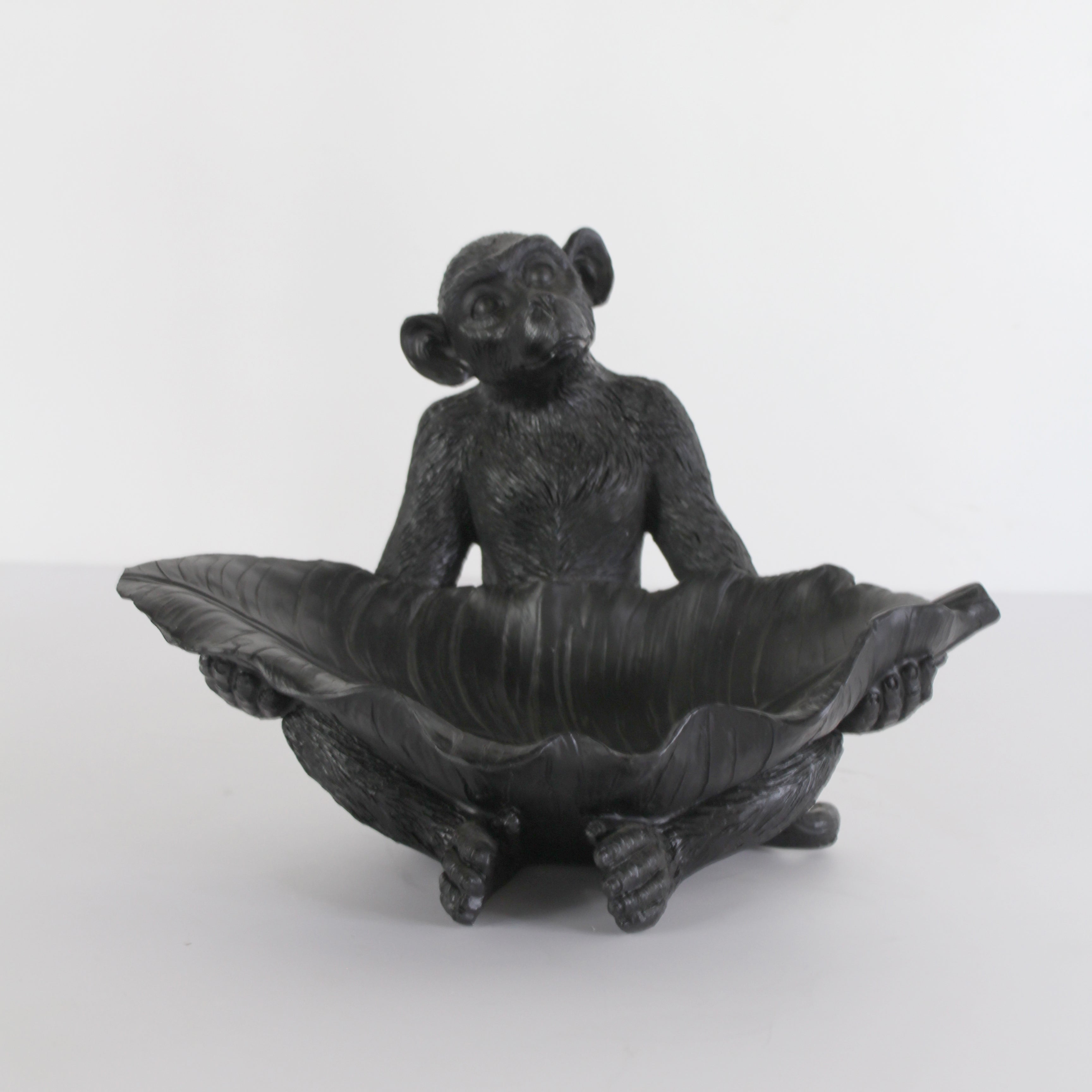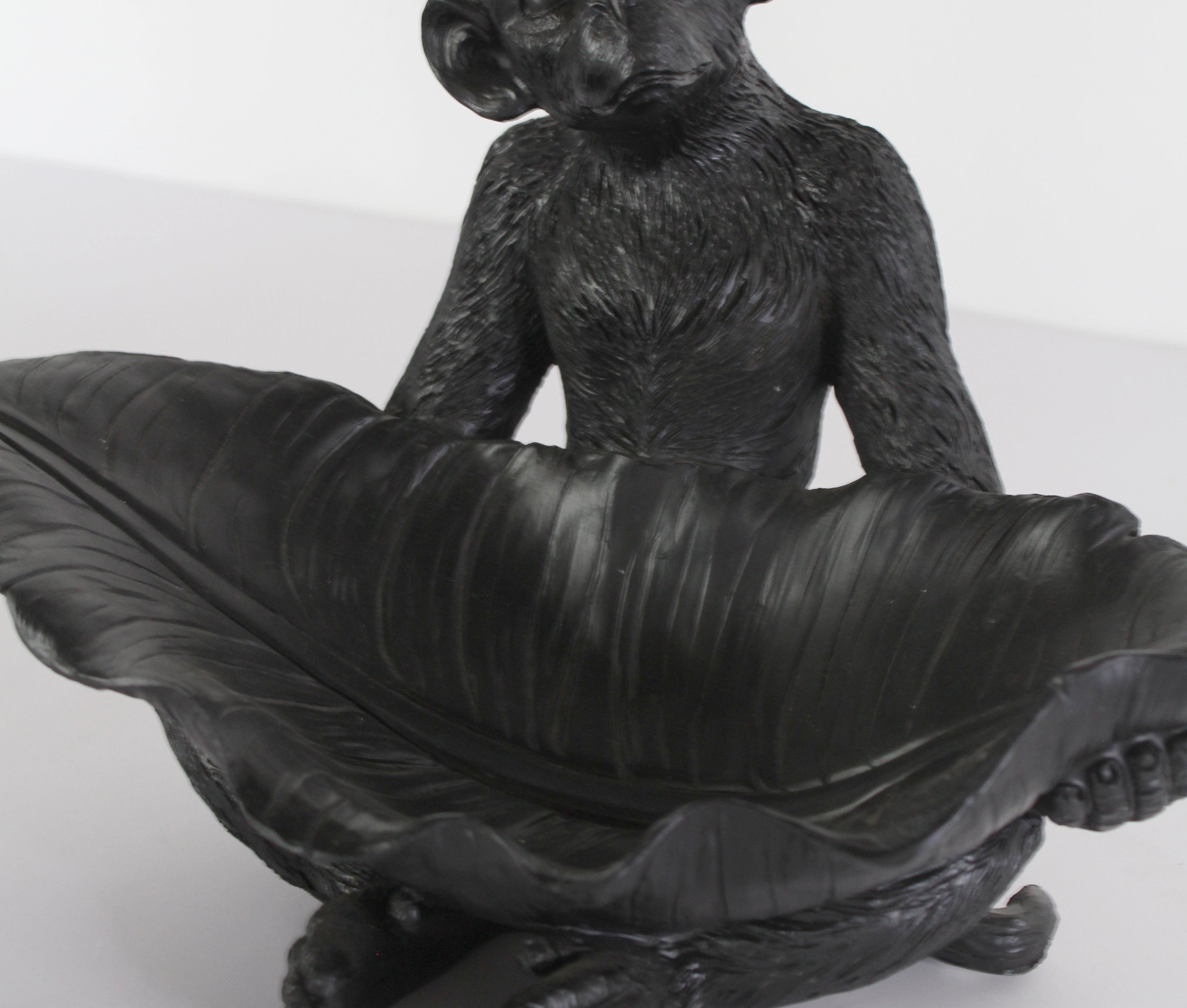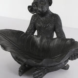 Resin Monkey with Leaf | Black