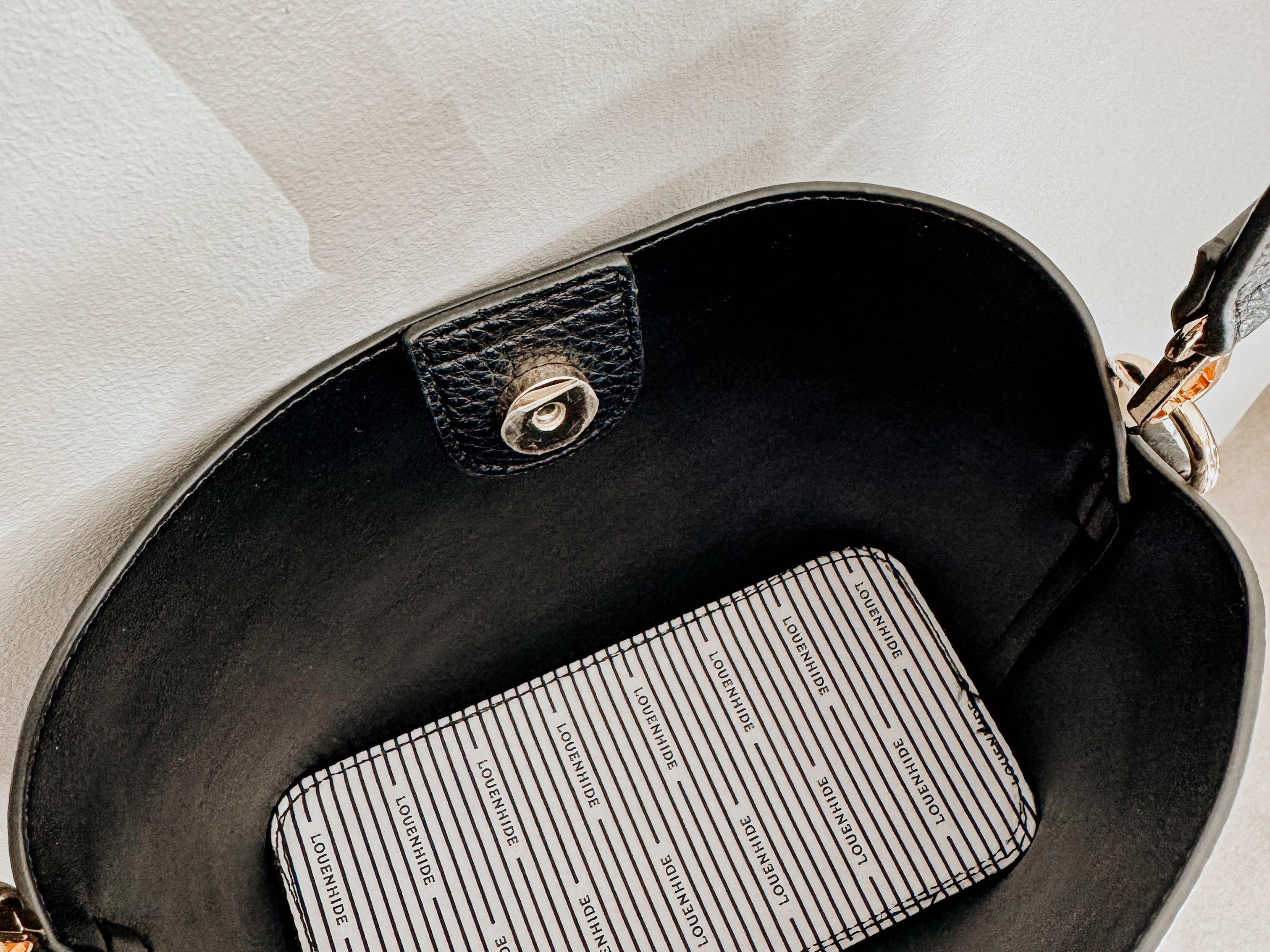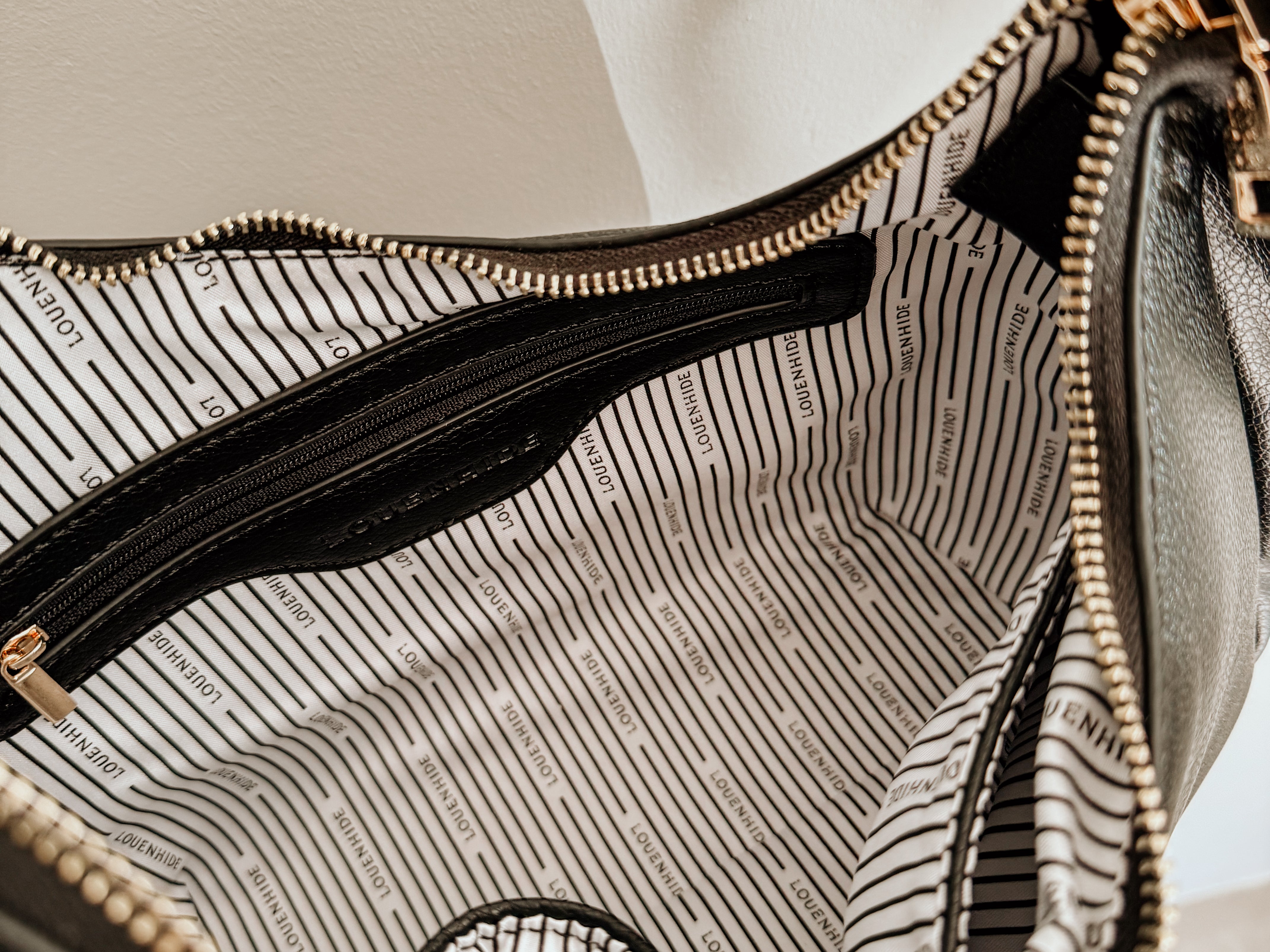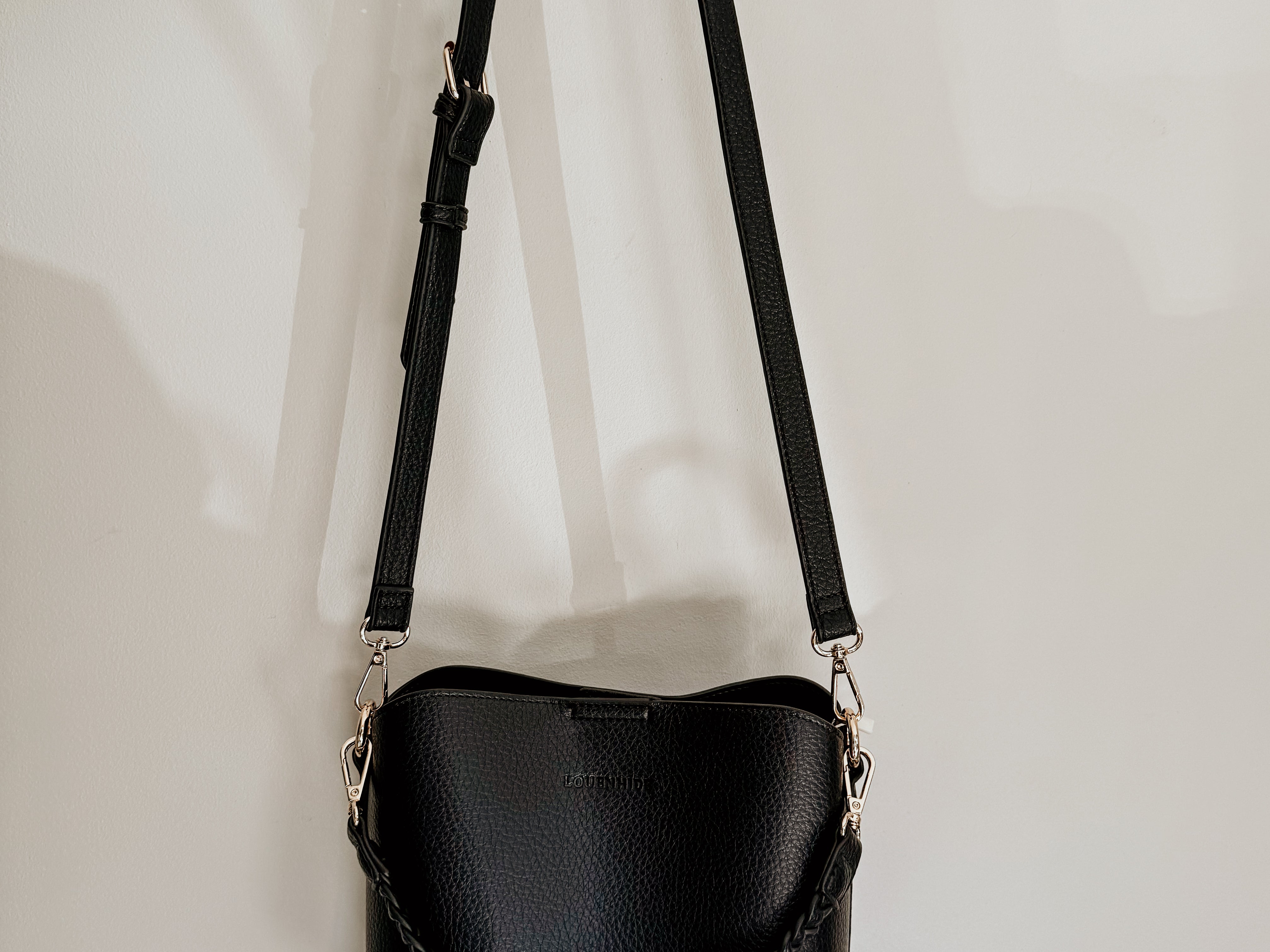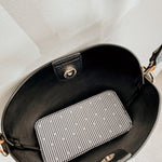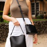 The Soho Black includes an internal clutch for organizing your essentials and can be downsized for on-the-go moments by attaching the crossbody strap.