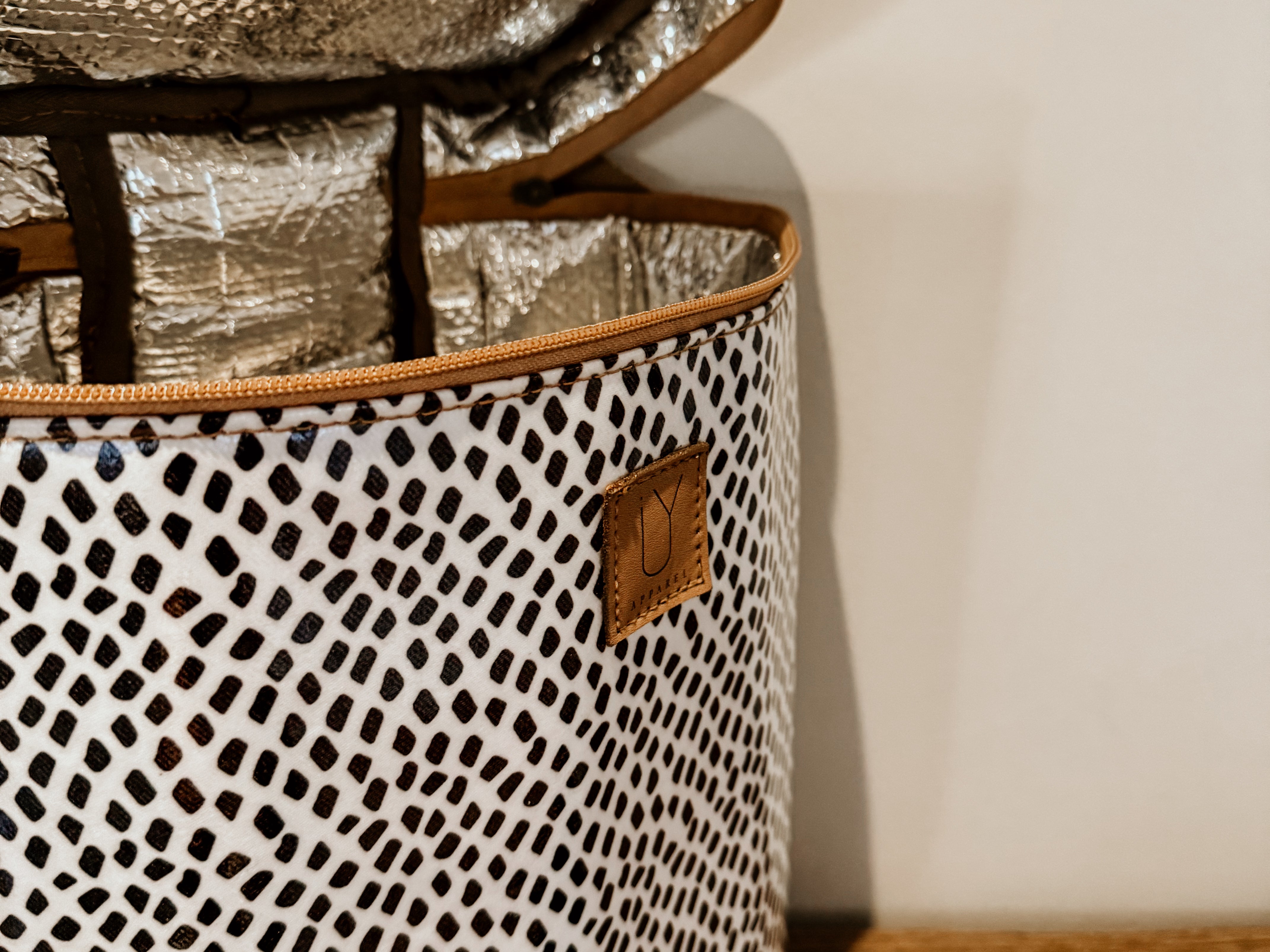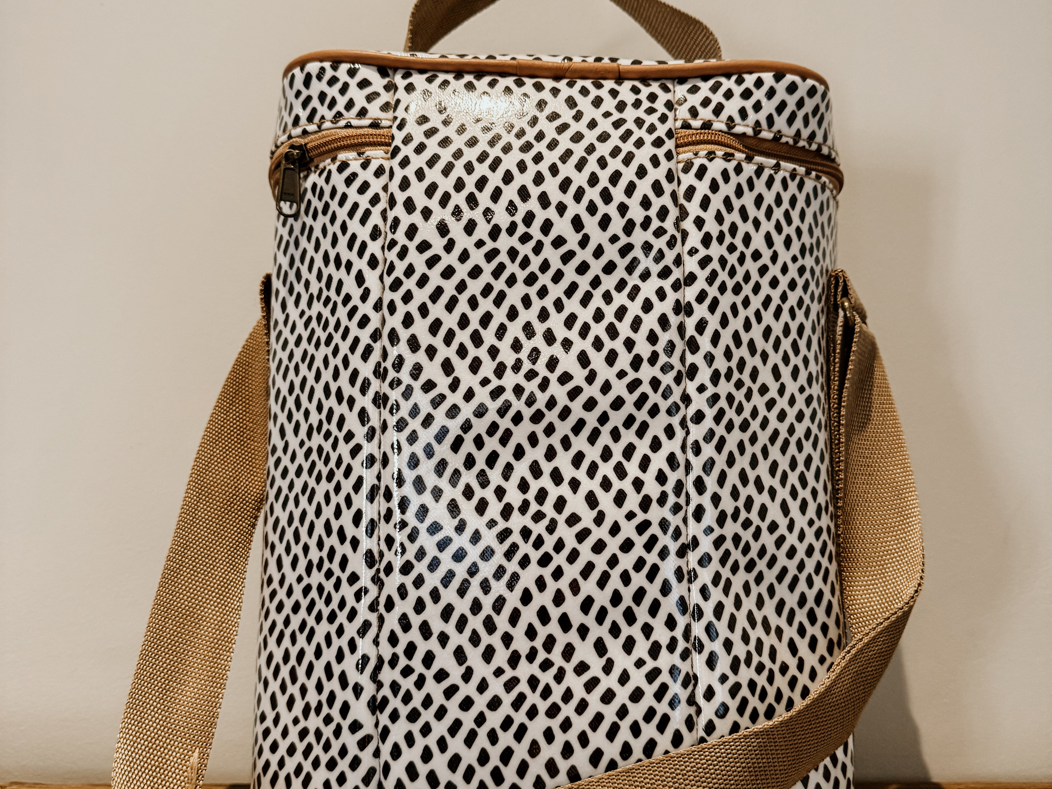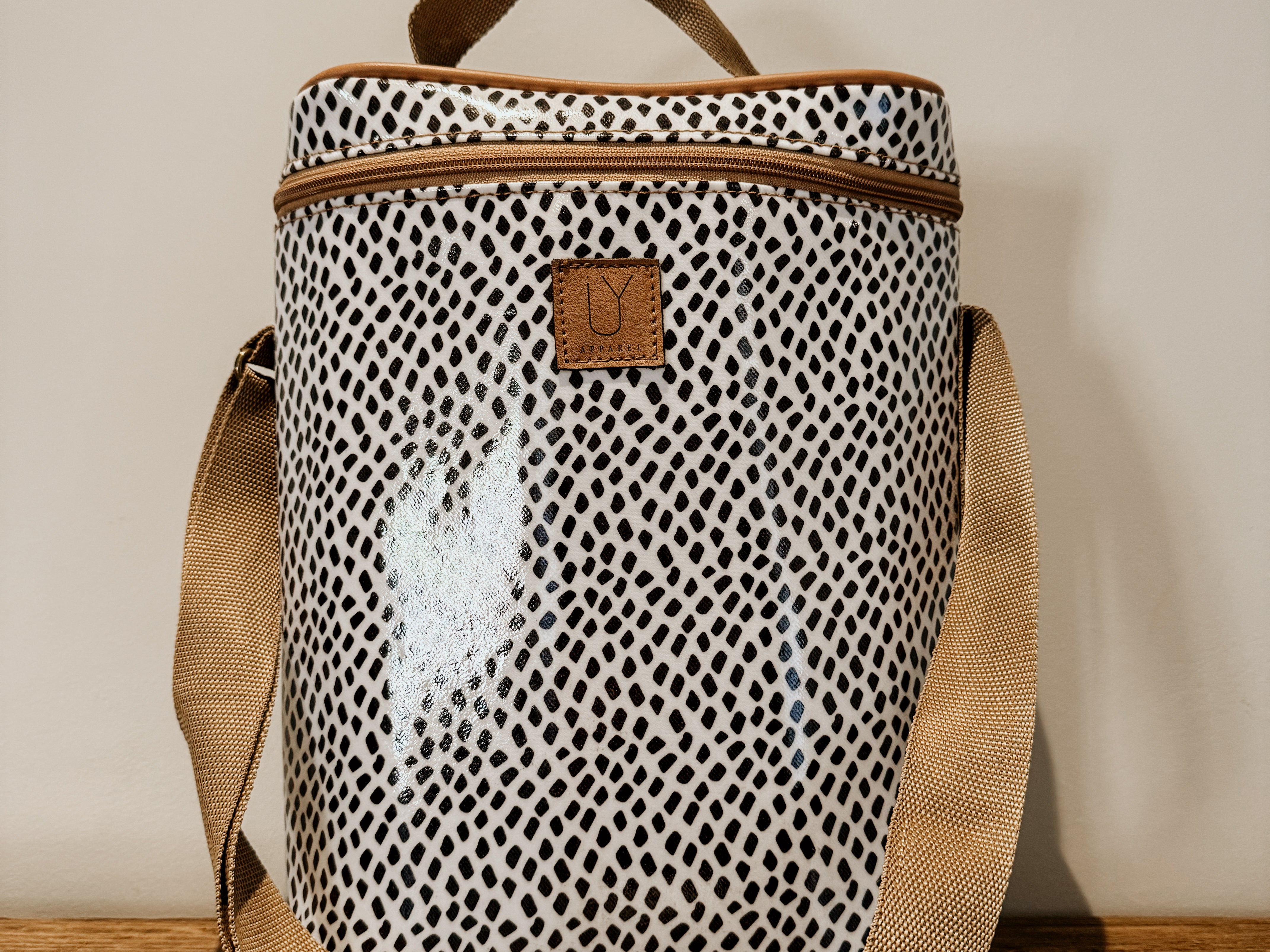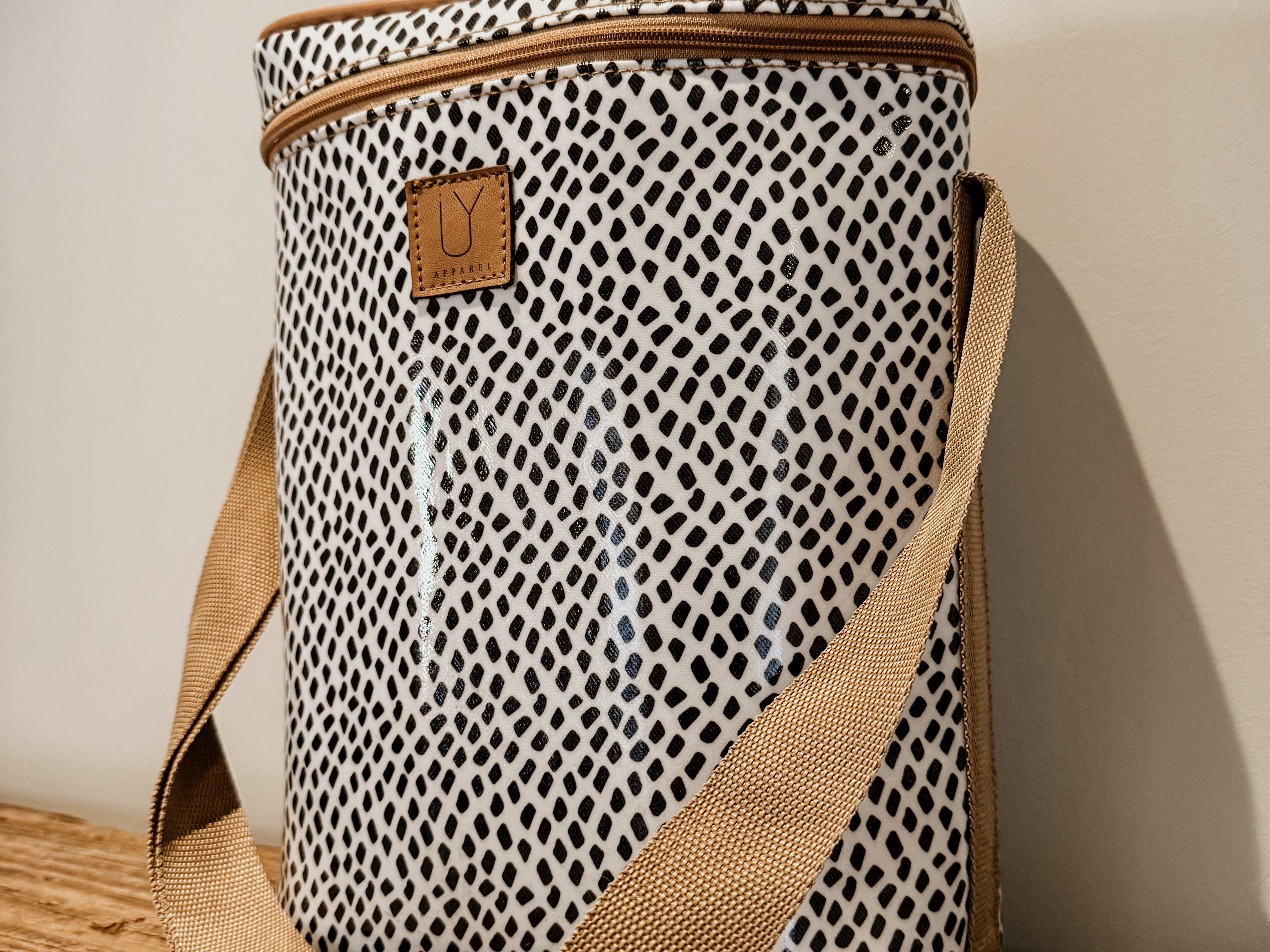 This versatile cooler bag can be used for drinks or snacks. Sundowners are sorted - pack your glasses, a bottle of bubbly, and snacks into this cooler! Easy to carry with an adjustable strap, it includes an inner sleeve to keep bottles or flasks in place. The outer fabric is laminated to ensure the fabric is waterproof and can be wiped clean.