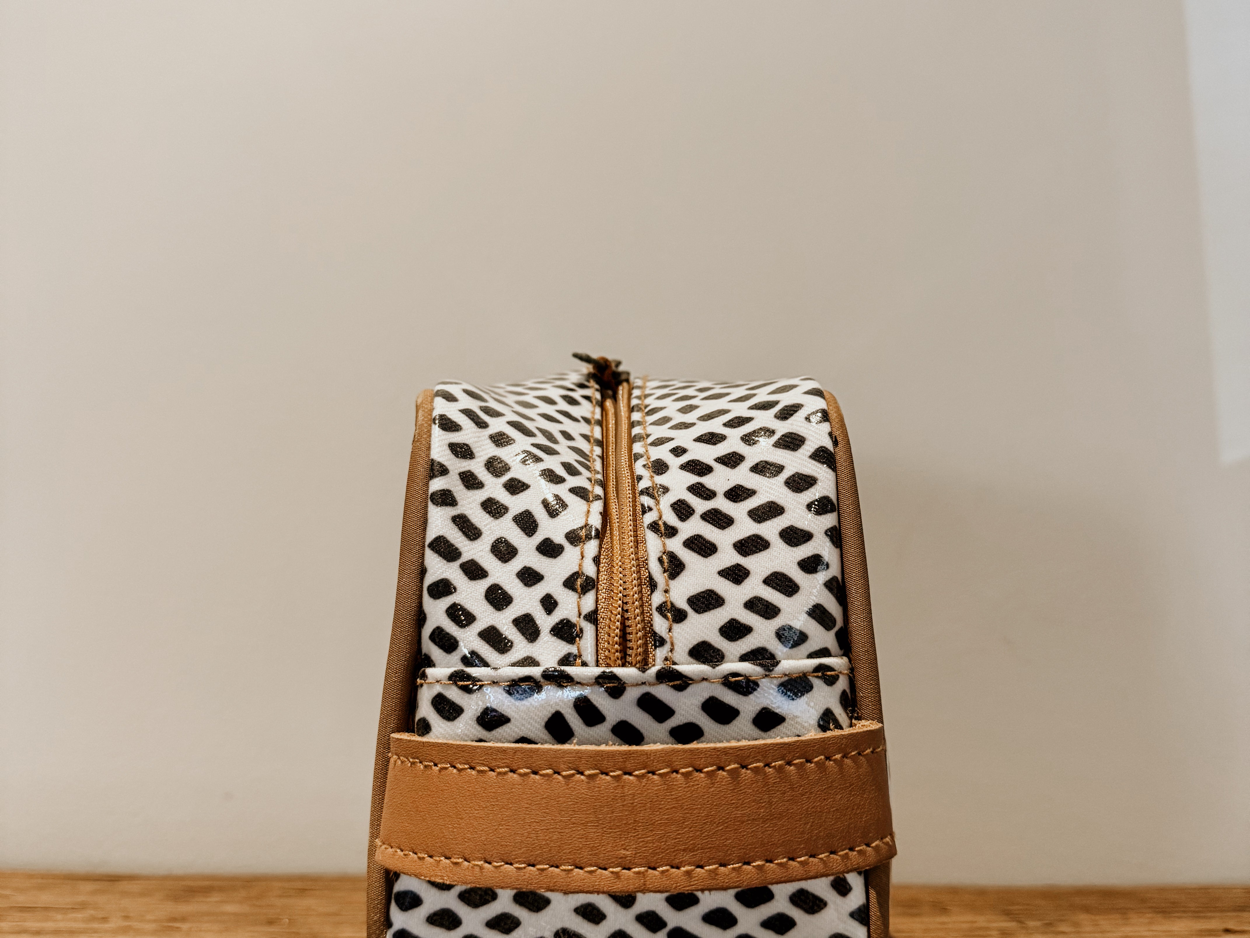 Includes inner waterproof lining and outer fabric is laminated to ensure the bag remains protected from water or dirt and can be wiped clean. All binding and trims are canvas.