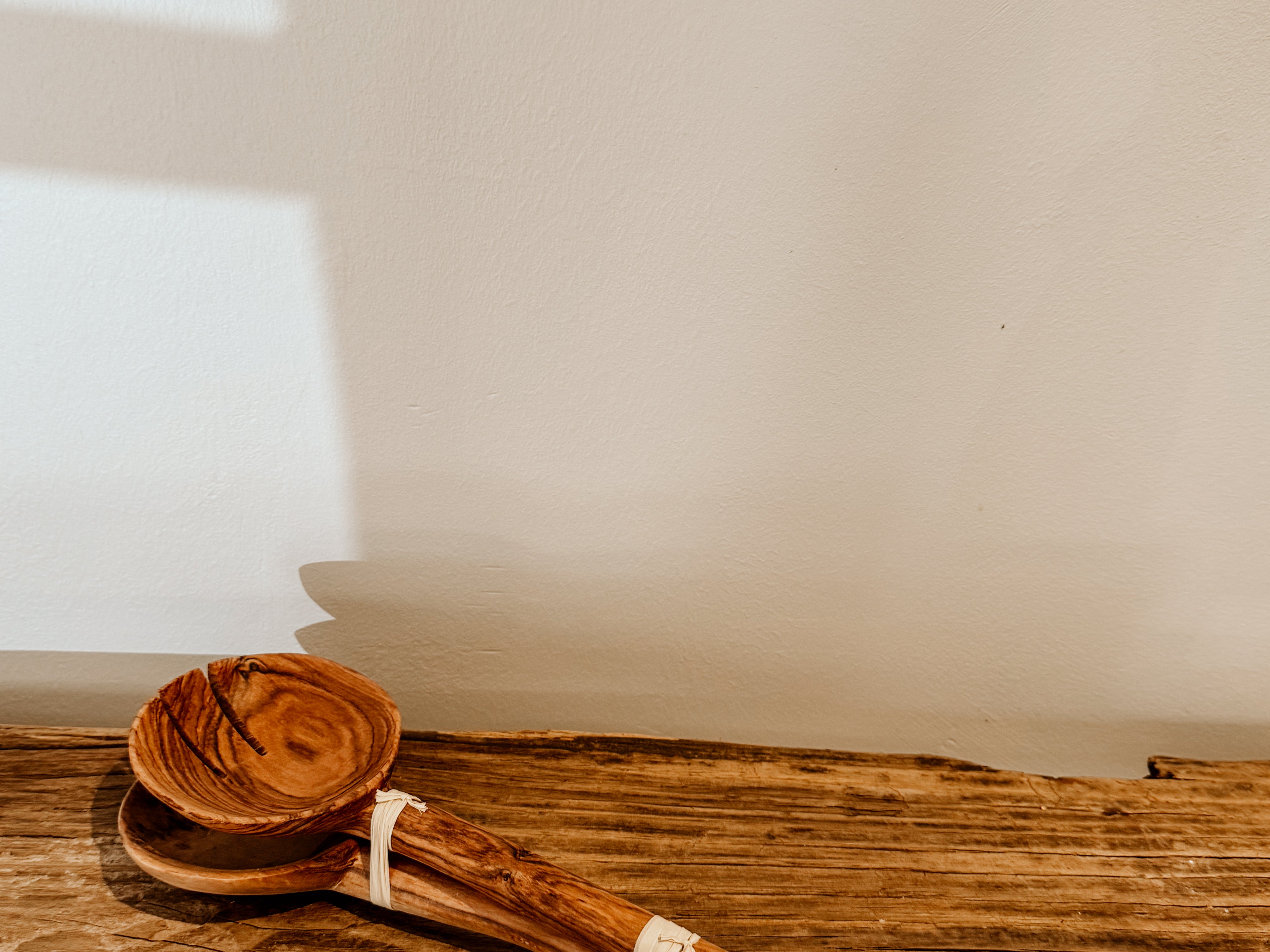 Squared Carved Bone Salad Sever | Natural & Ivory
