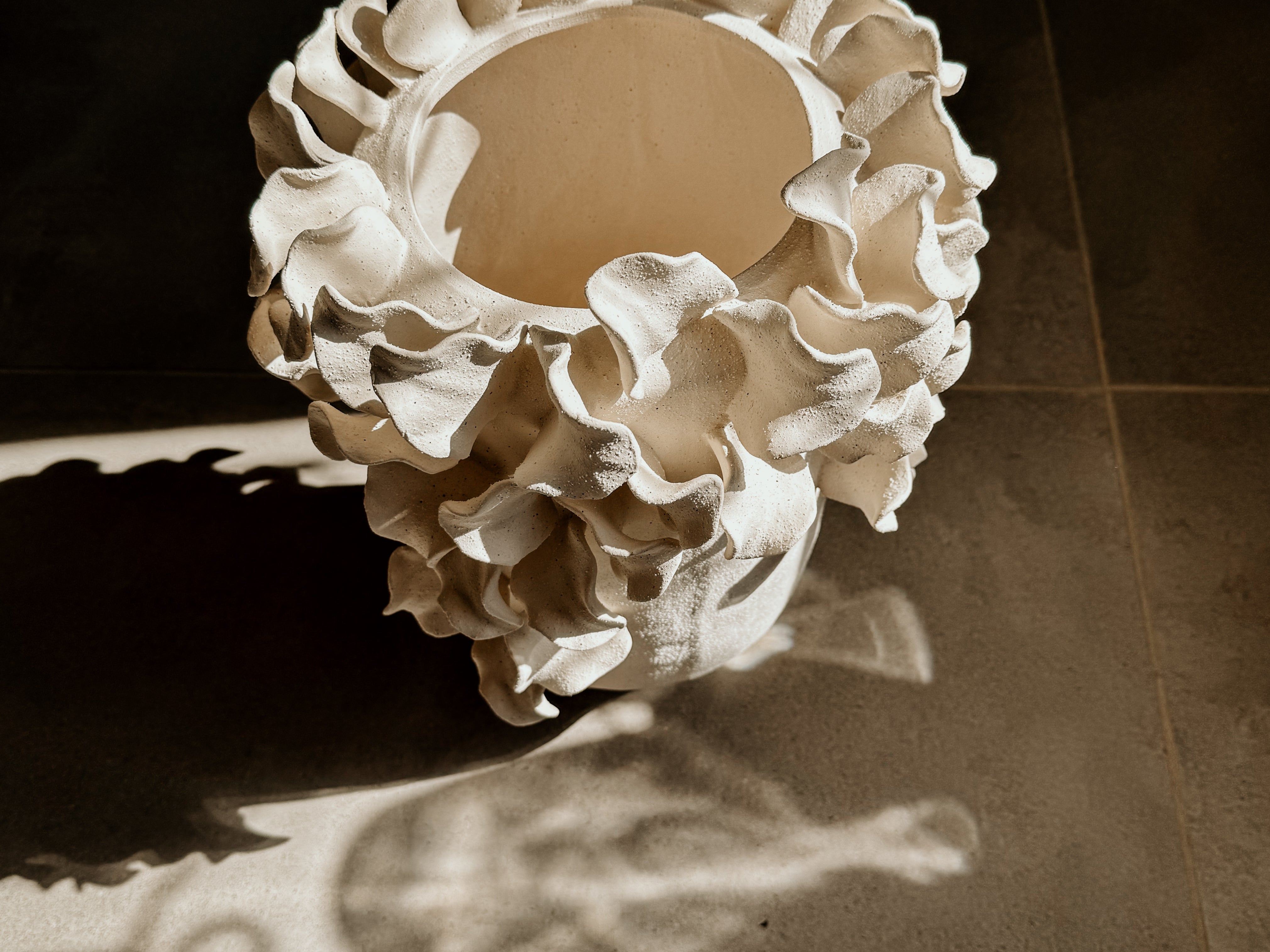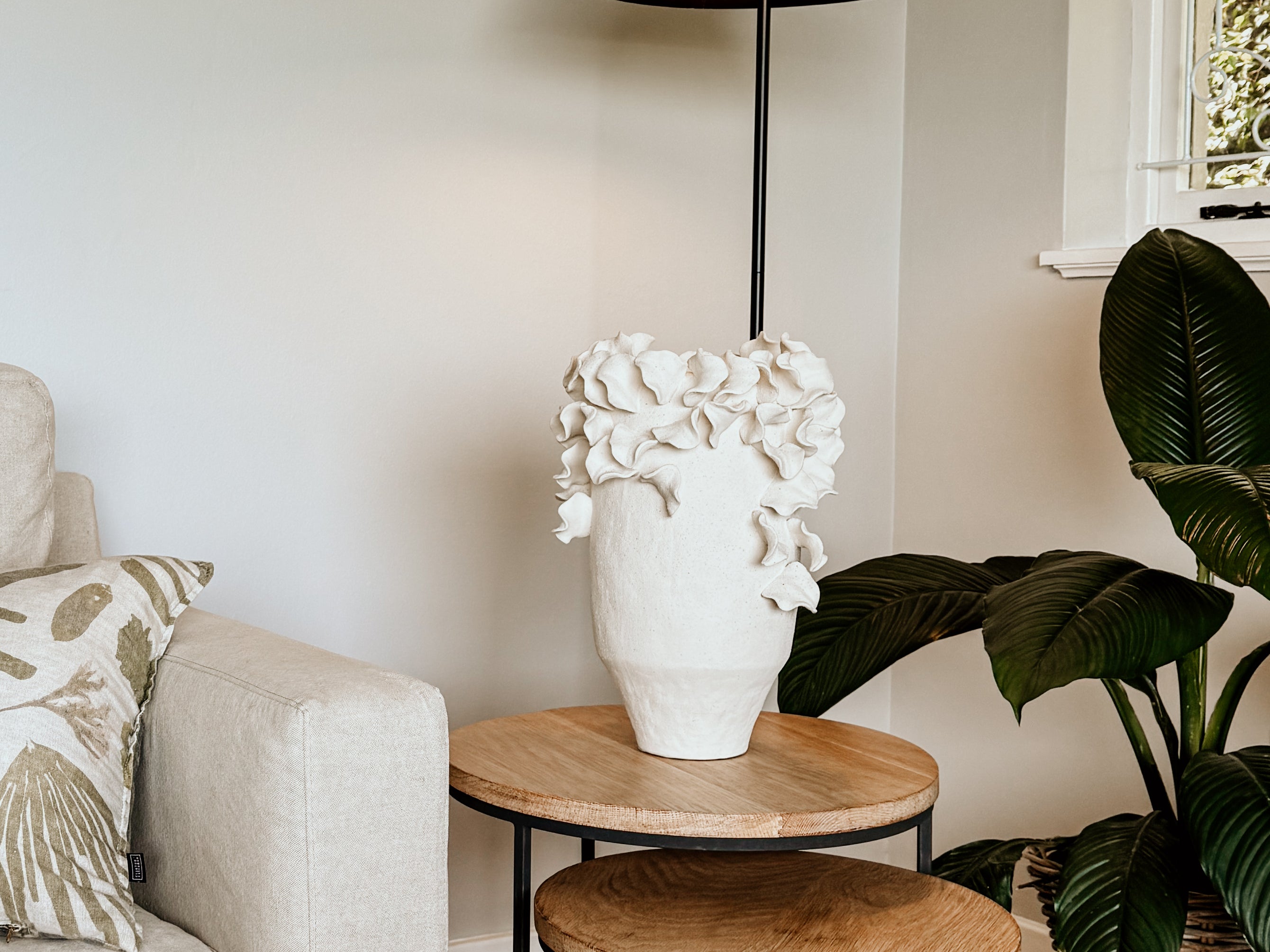 Dressed in creamy ivory with playful leaf-shaped contours, this gorgeous planter is generously proportioned to showcase your favourite flora in style. A conversation starter that proves planters can be just as interesting as the plants they hold.