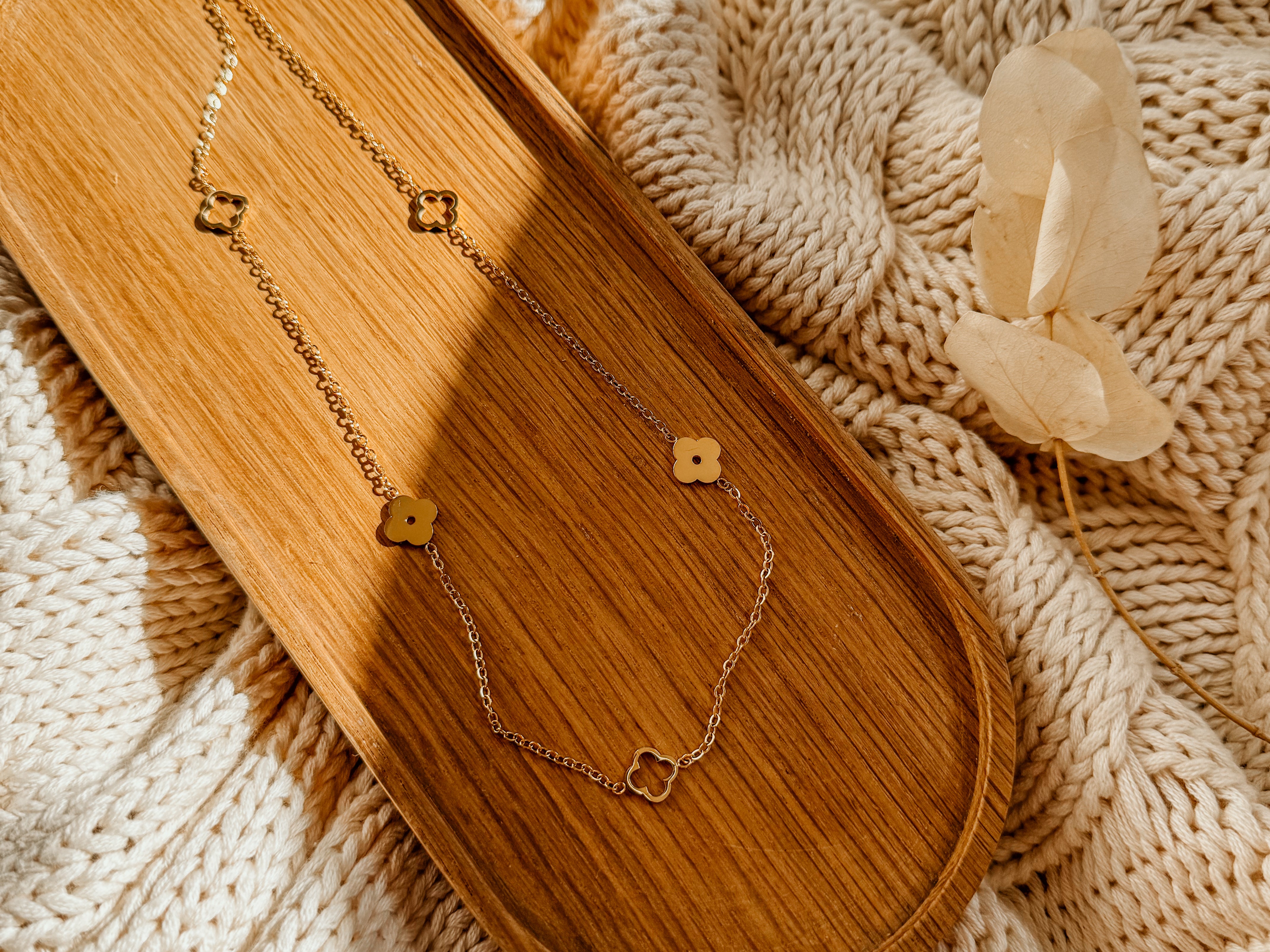 The Celine Necklace features a delicate floral-inspired design. Lightweight and versatile, this necklace effortlessly brings a touch of refined beauty to your jewelry collection.