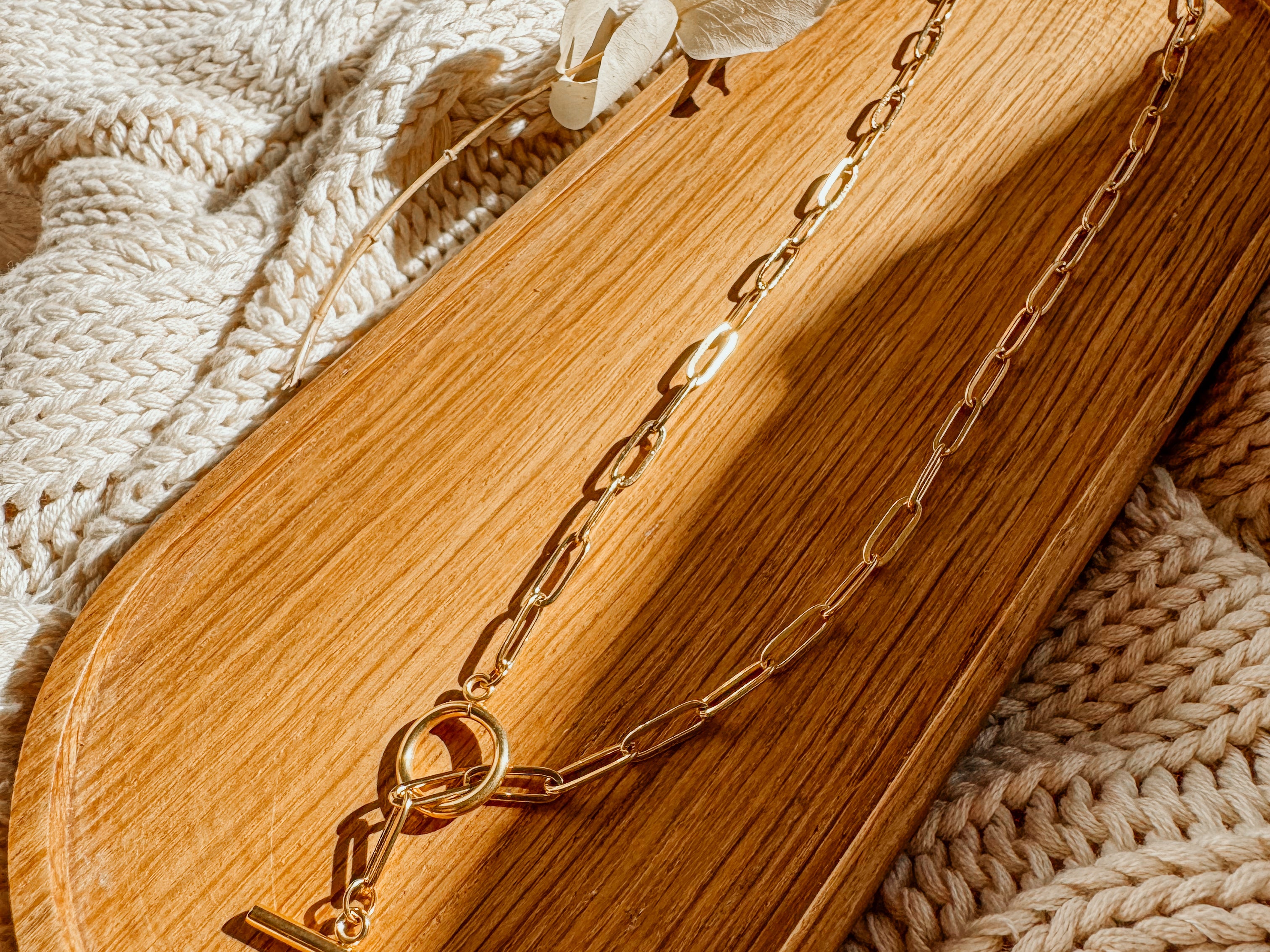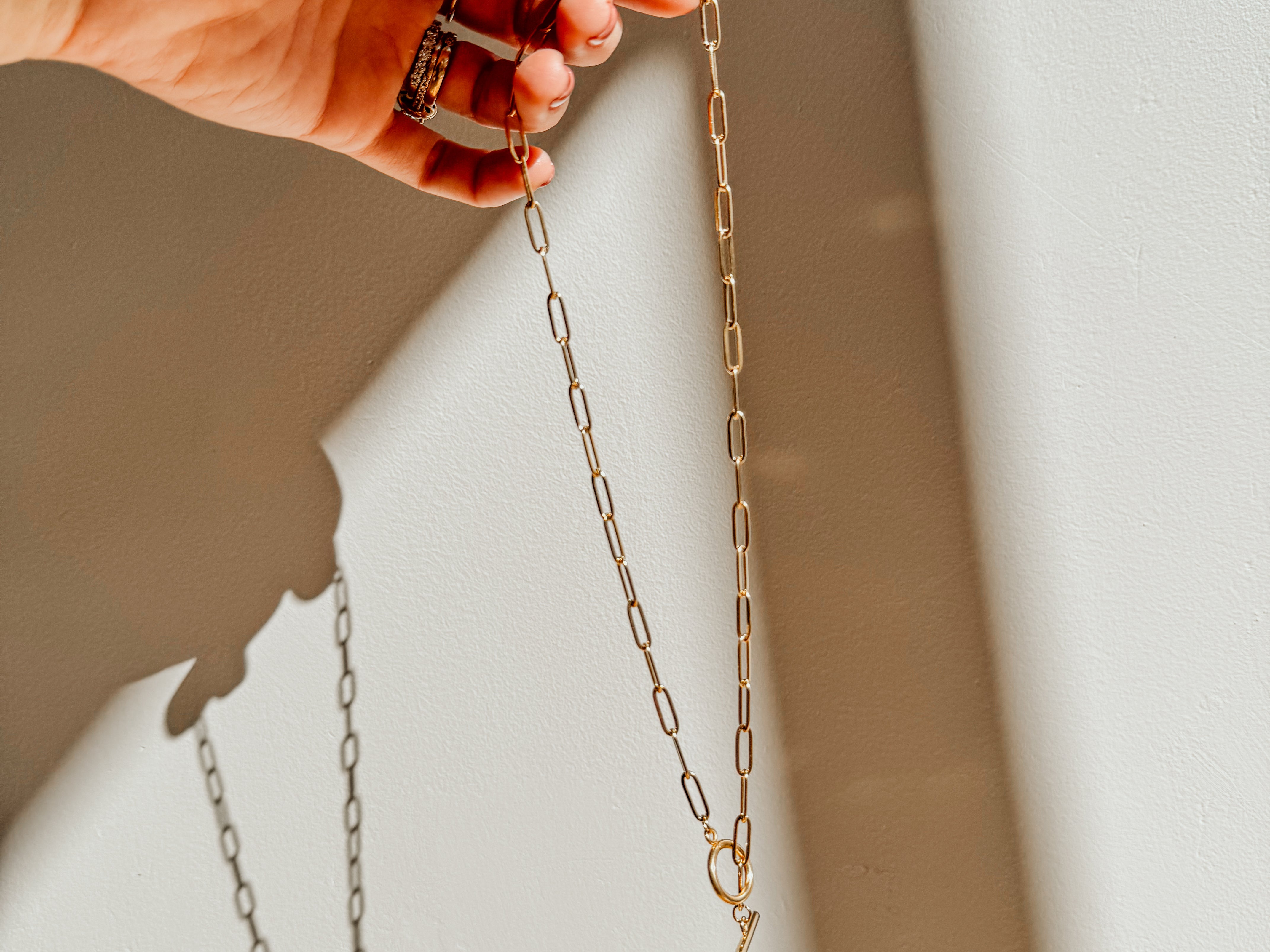 The Emily Link Necklace is a simple and trendy design with a delicate charm. Perfect for layering or wearing solo, it adds a subtle touch of elegance to any outfit, making it a versatile accessory.