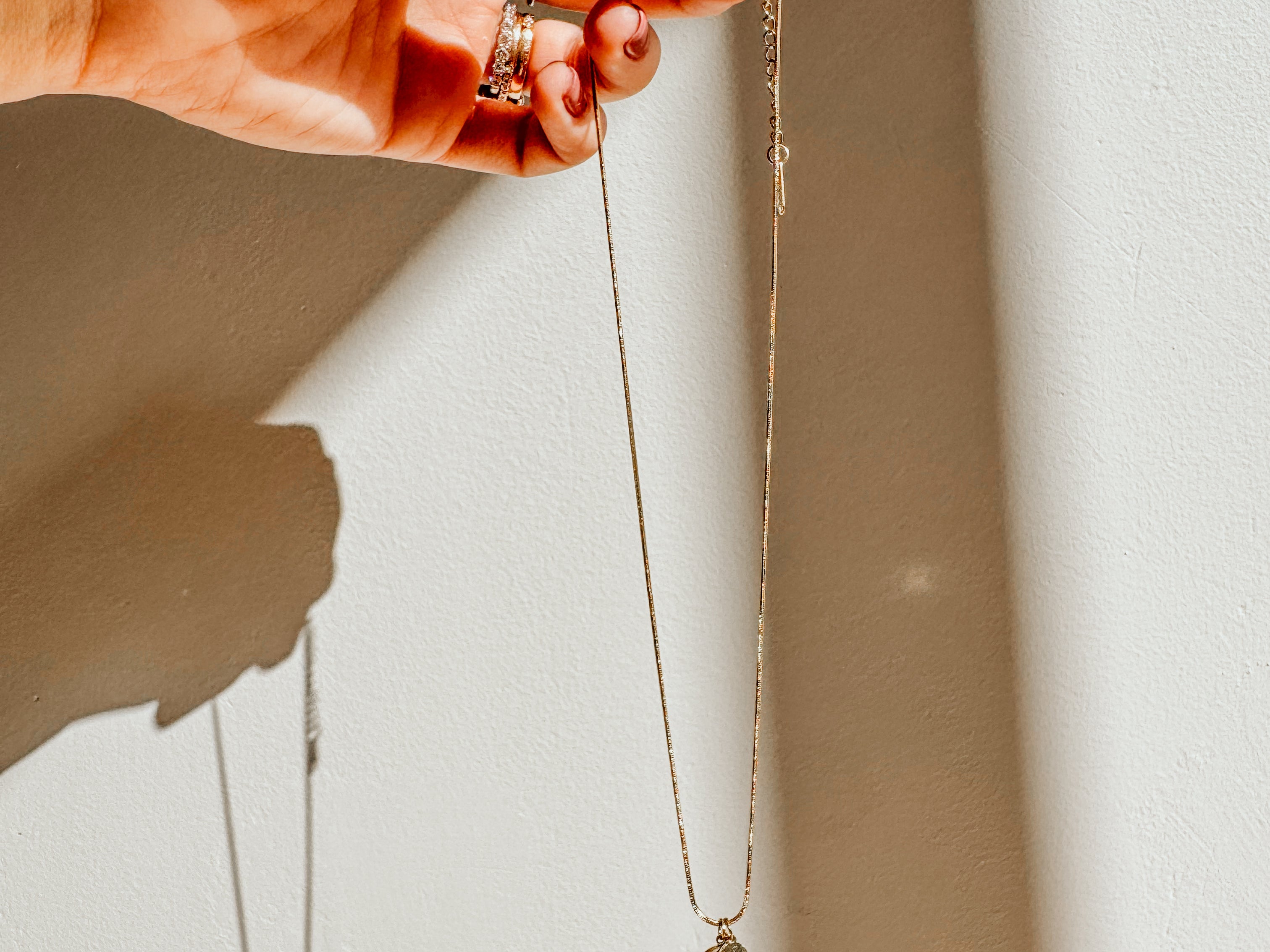 The Giselle Necklace combines a dainty charm with a lightweight design. Its subtle shine and delicate form make it perfect for everyday wear, adding a graceful touch without feeling heavy.